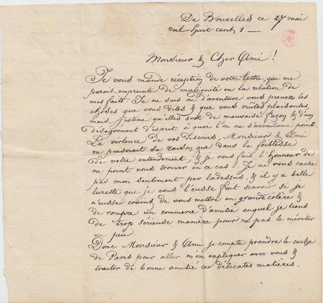 De Bruxelles ce 27 mai mil huit cent 1 –