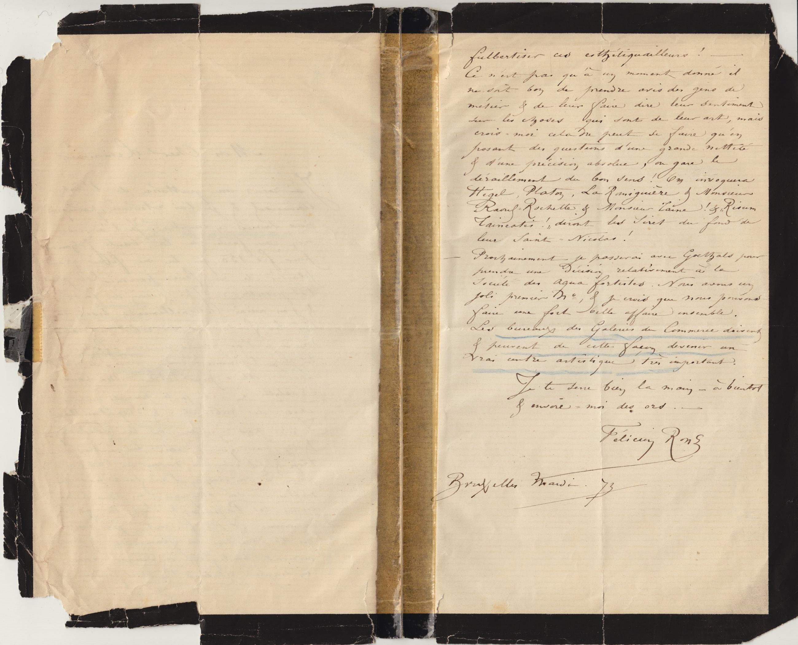 – Prochainement je passerai avec Goethals pour prendre une décision relativement à la Société des Aqua fortistes. Nous avons un joli premier N°, & je crois que nous pouvons faire une fort belle affaire ensemble.