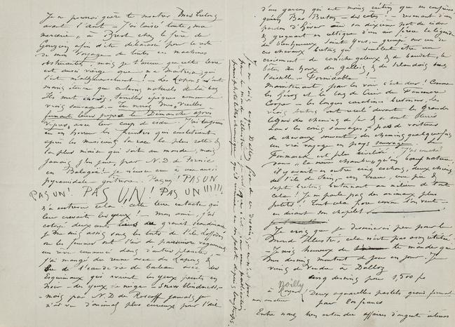 Ils sont inouïs, terribles épiques comme de vrais sauvages. – Tu verras mes « vieilles fumant leurs pipes le Dimanche après Vêpres » avec leur coup de cidre. J’ai toujours eu en horreur les peintres qui constituent après les musiciens la race la plus sotte & la plus niaise qui soit au monde, mais jamais j’en jure, par N.D. de Pornic en Balogoë ! – je n’eusse cru à une aussi pyramidale goîtrerie. Pas un ! PAS UN PAS UN ! PAS UN ! PAS UN !!!!!! n’a entrevu cela ! Cette terre intacte qui leur crevait les yeux ! – mon ami, j’ai cotoyé deux cents lieus du granit scandinave, je me suis assis sous les toits de l’île Loffoden où les femmes ont l’air de poursuivre vaguement un rêve commencé dans d’autres planètes, – j’ai mangé du renne avec des Lapons & bu de l’eau de vie de bouleau avec des Esquimaux qui avaient les yeux peints en noir – des yeux de neige – Snow blindness, –