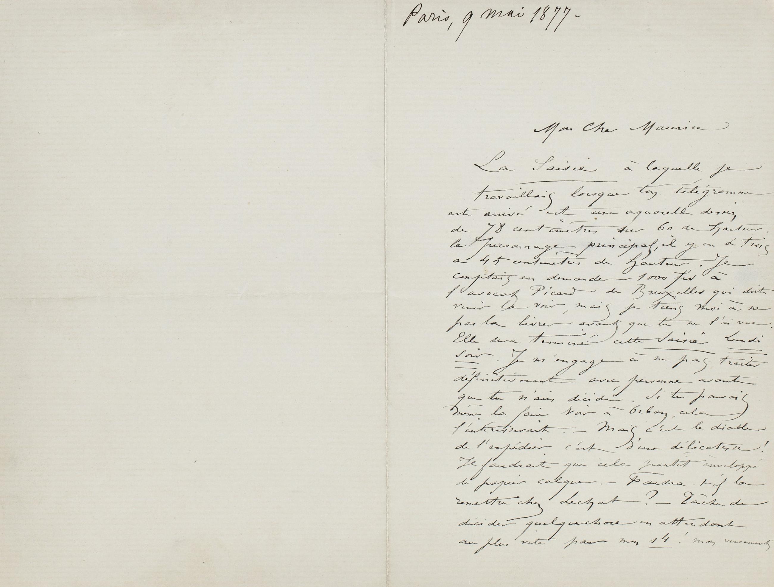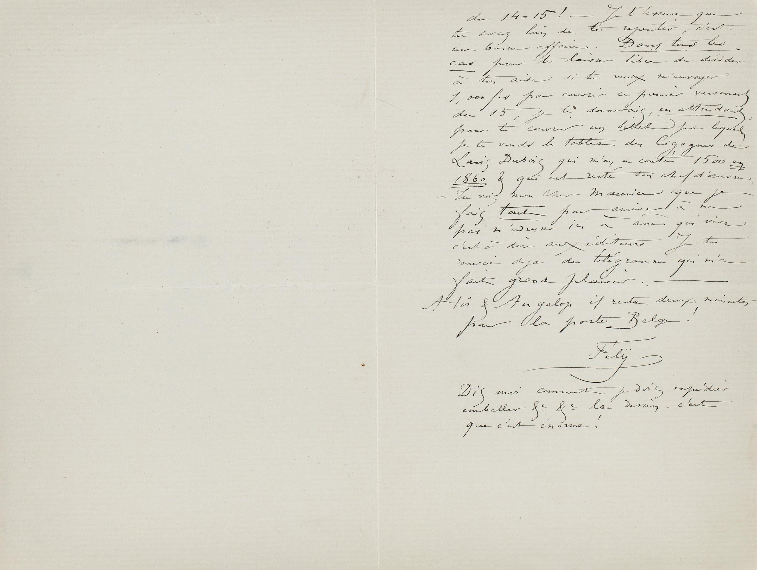– Tu vois mon cher Maurice que je fais tout pour arriver à ne pas m’adresser ici à âne qui vive c’est à dire aux éditeurs. Je te remercie déja du télégramme qui m’a fait grand plaisir. –