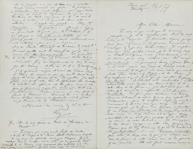 À bientôt fais mes Compliments à tous les amis que tu verras – Artan es-t-il à Blankenberghe ? S’il y avait moyen d’avoir du Japon-Ink à Paris tu comprends que je ne te demanderais pas de m’en procurer de Bruxelles. J’ai tout fait j’ai porté chez tous les spécialistes de bouteilles de modèle, les priant de me faire revenir cela que je paierais ce que l’on voudrait, tout cela inutilement. Bulens successeur de Olin doit être facile à trouver ! – Demande lui à Bulens d’où il fait venir son produit s’il te plaît car je renonce à le trouver ici.