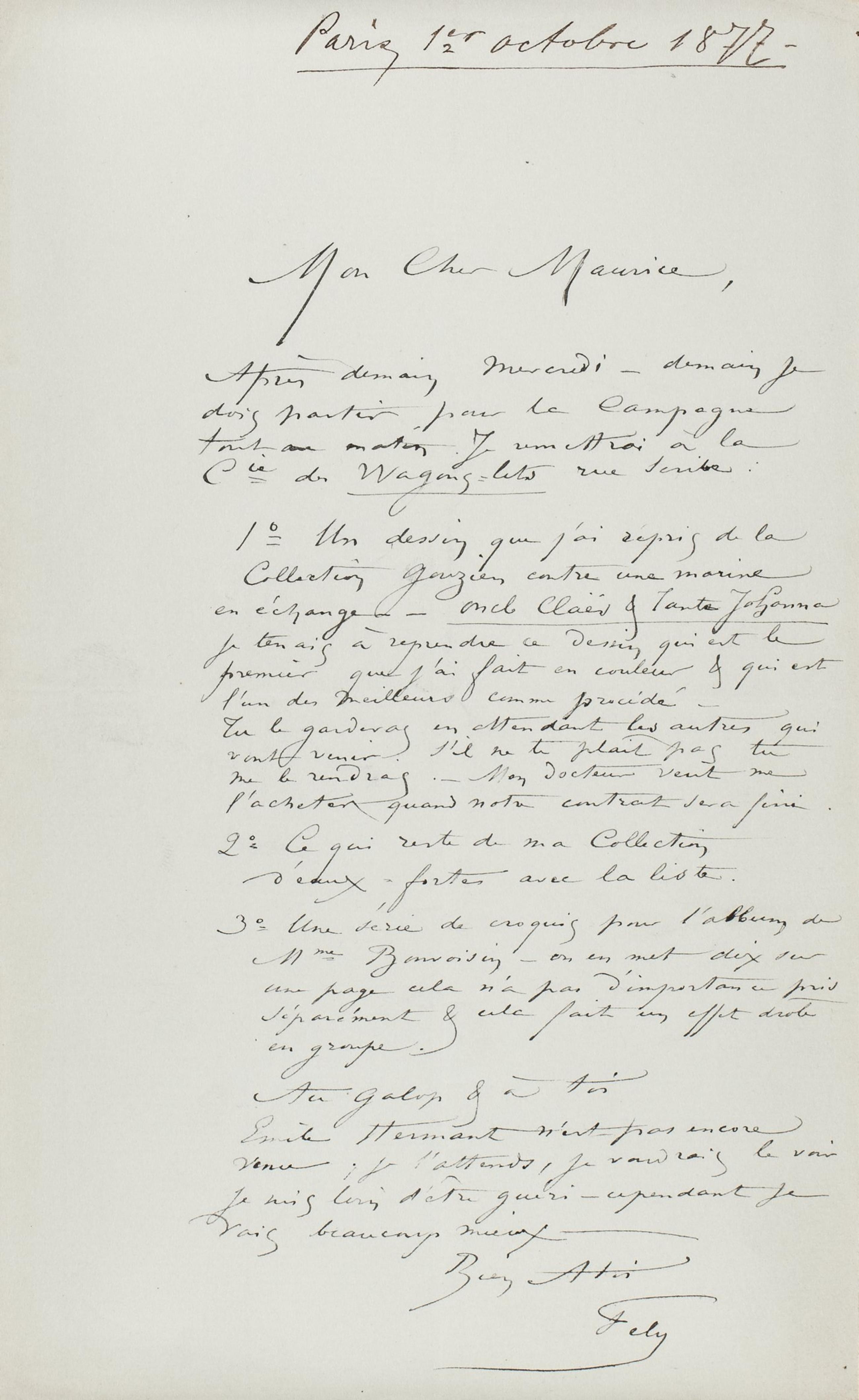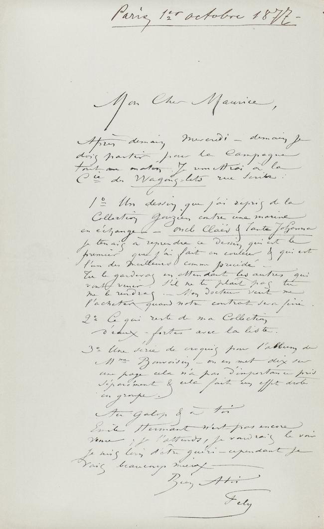 Après demain Mercredi – demain je dois partir pour la campagne tout au matin. Je remettrai à la Cie des Wagons-lits rue scribe :