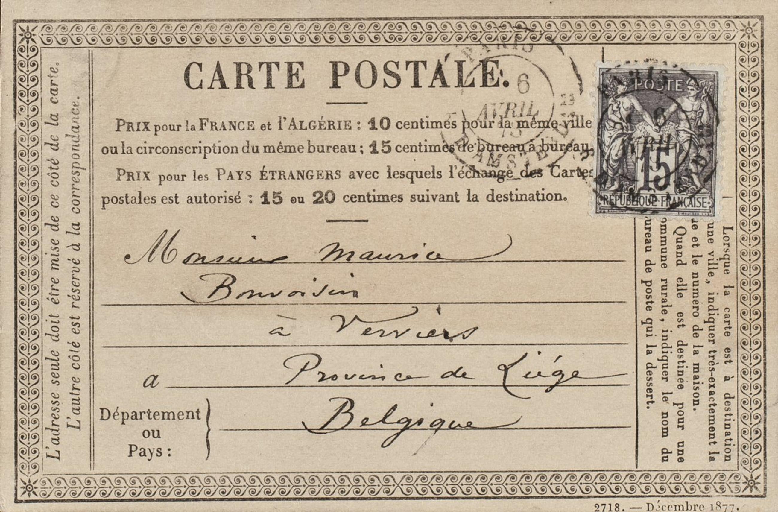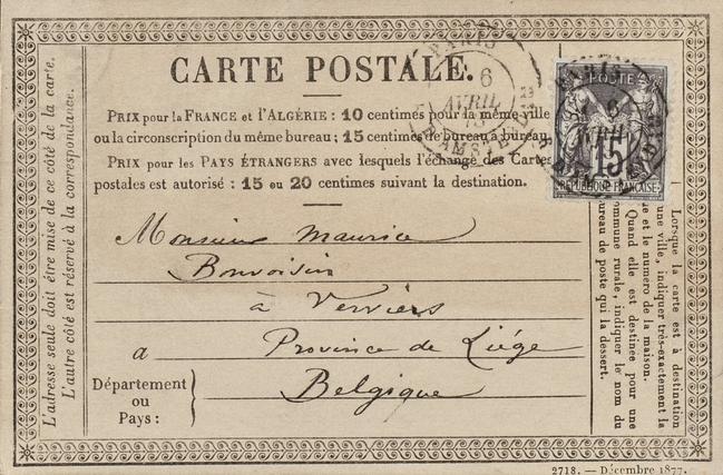 Monsieur Maurice Bonvoisinà Verviers Province de LiégeBelgique Page 1 Verso : 2