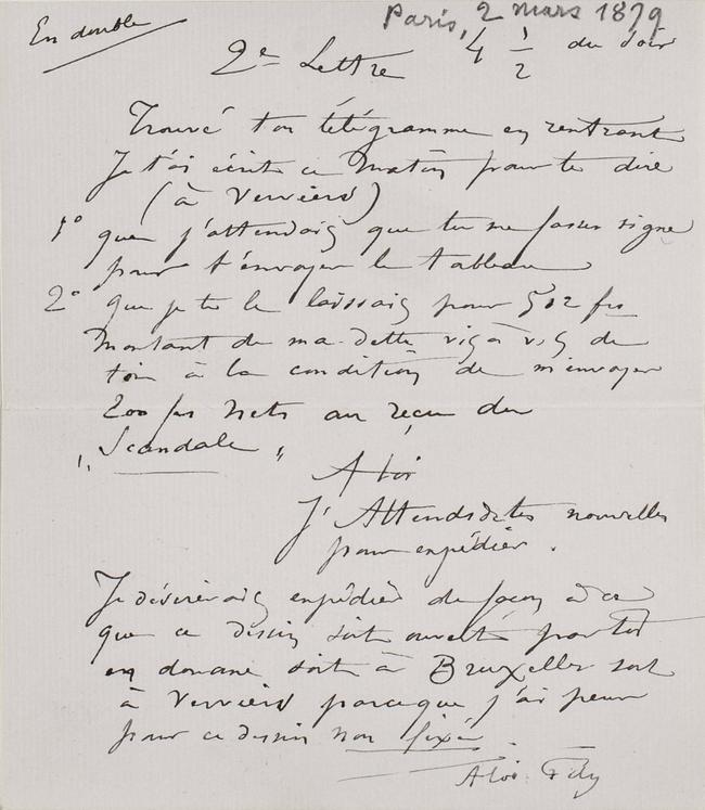 2° que je te le laissais pour 512 frs Montant de ma dette vis à vis de toi à la condition de m’envoyer 200 frs nets au reçu du « Scandale »