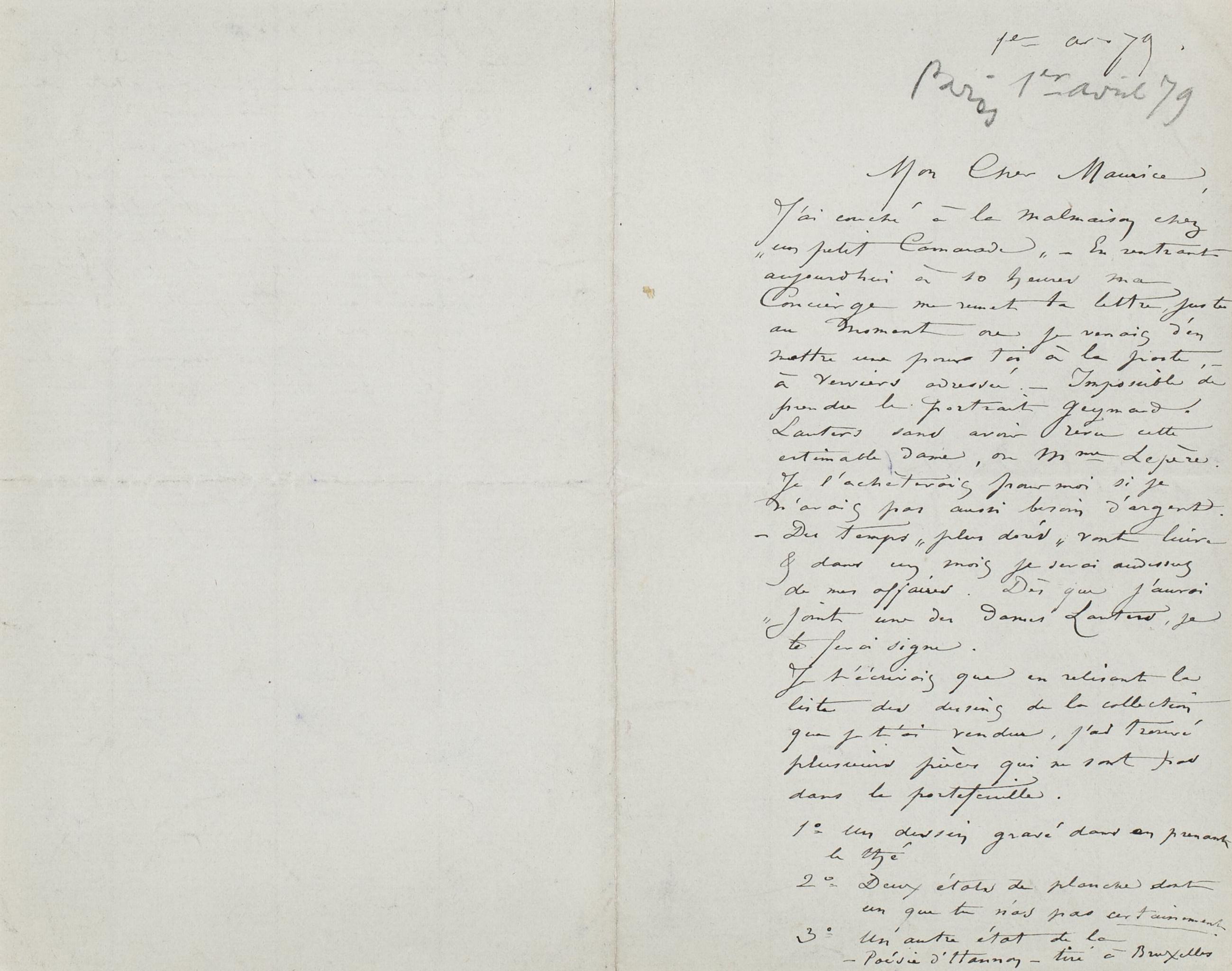 Je t’écrirais que en relisant la liste des dessins de la collection que je t’ai vendue, j’ai trouvé plusieurs pièces qui ne sont pas dans le portefeuille.