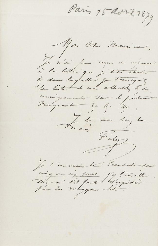 Je n’ai pas reçu de réponse à la lettre que je t’ai écrite & dans laquelle je t’envoyais la liste de ma collection & des renseignements sur le portrait de Mocquart &c &c. &c.