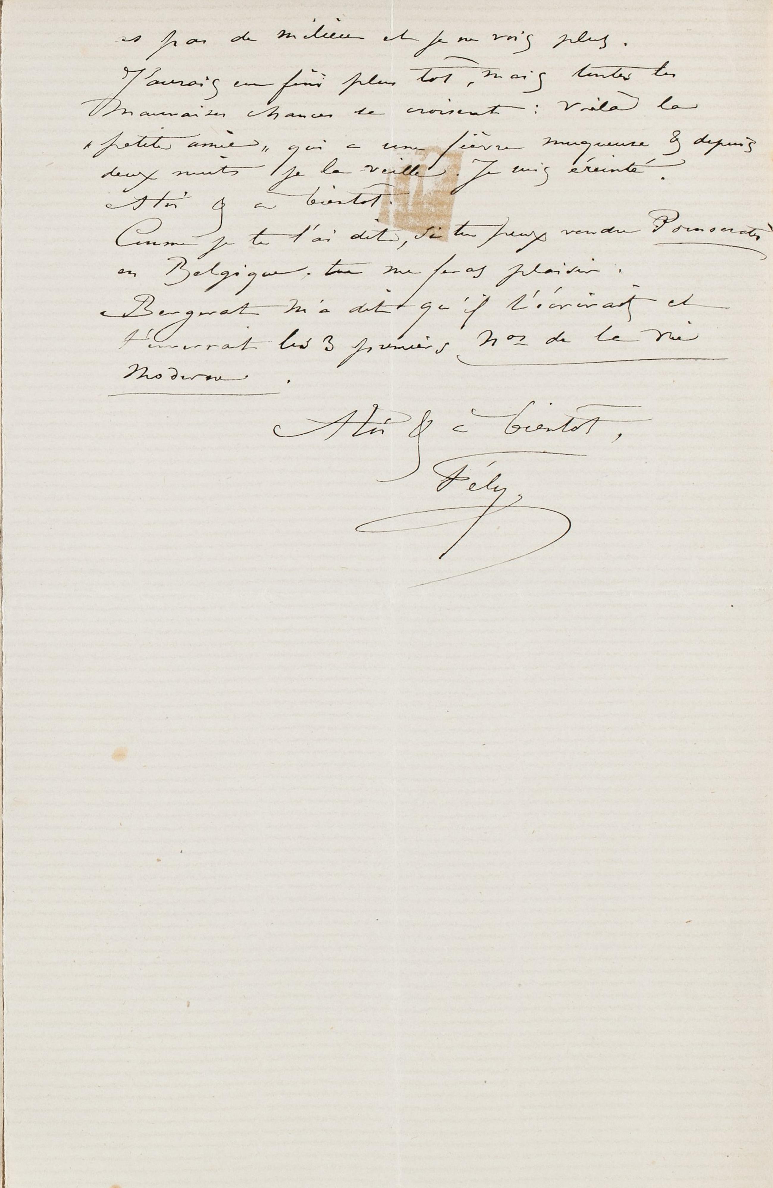 a pas de milieu et je ne vois plus. J’aurais eu fini plus tôt, mais toutes les mauvaises chances se croisent : voilà la « petite amie » qui a une fièvre muqueuse & depuis deux nuits je la veille. Je suis éreinté.