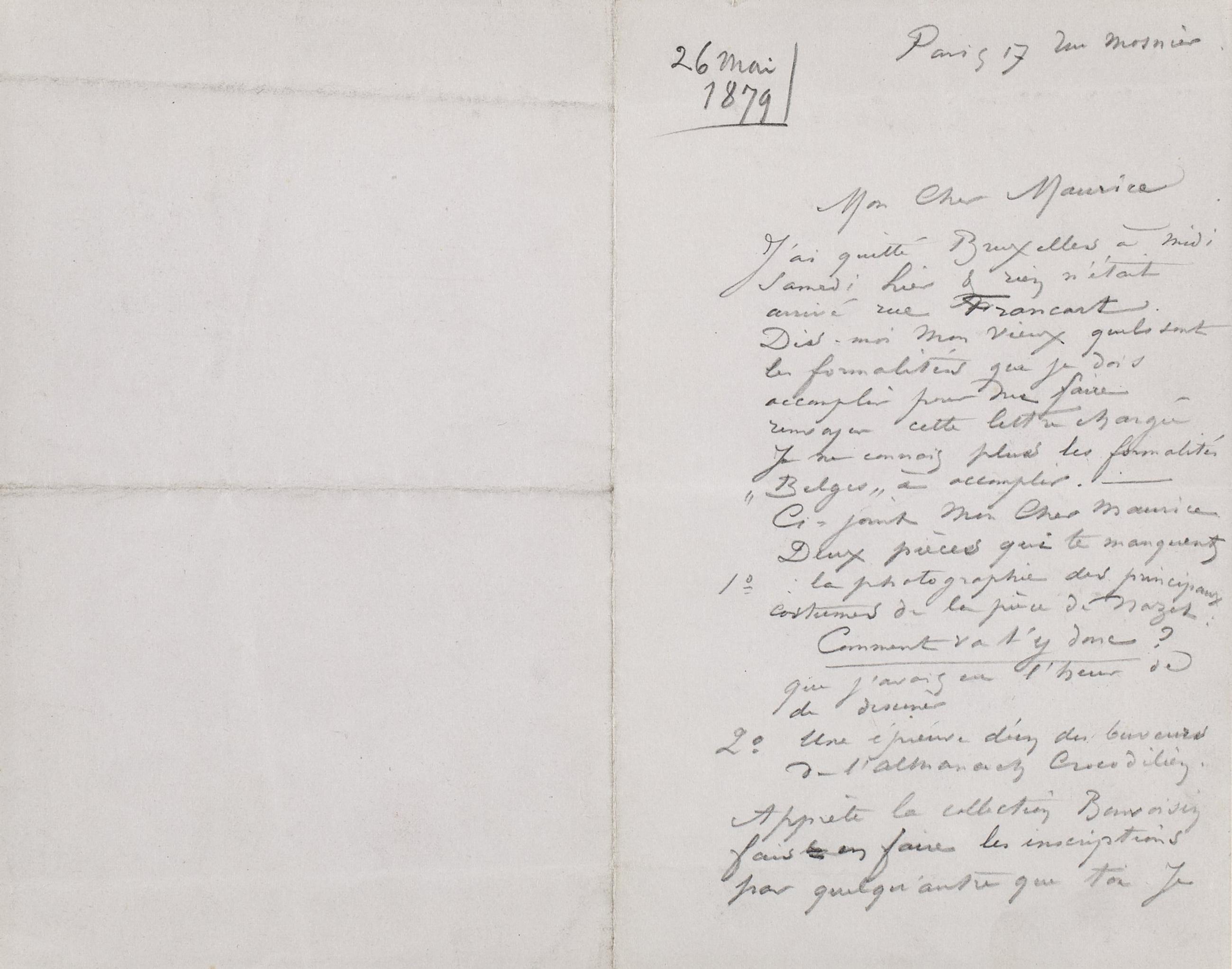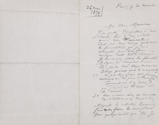 J’ai quitté Bruxelles à midi Samedi hier & rien n’était arrivé rue Francart. Dis-moi Mon Vieux quels sont les formalités que je dois accomplir pour me faire renvoyer cette lettre chargée Je ne connais plus les formalités « Belges » à accomplir. ‒