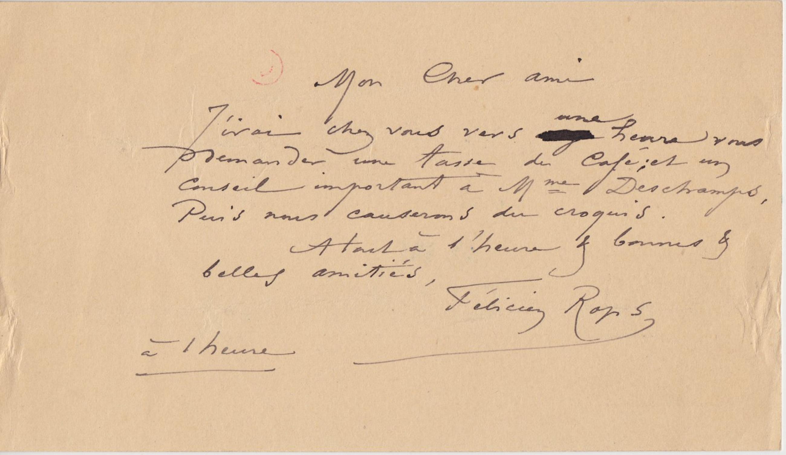 J’irai chez vous vers onze / une / heure vous demander une tasse de café ; et un conseil important à Mme Deschamps, Puis nous causerons du croquis.