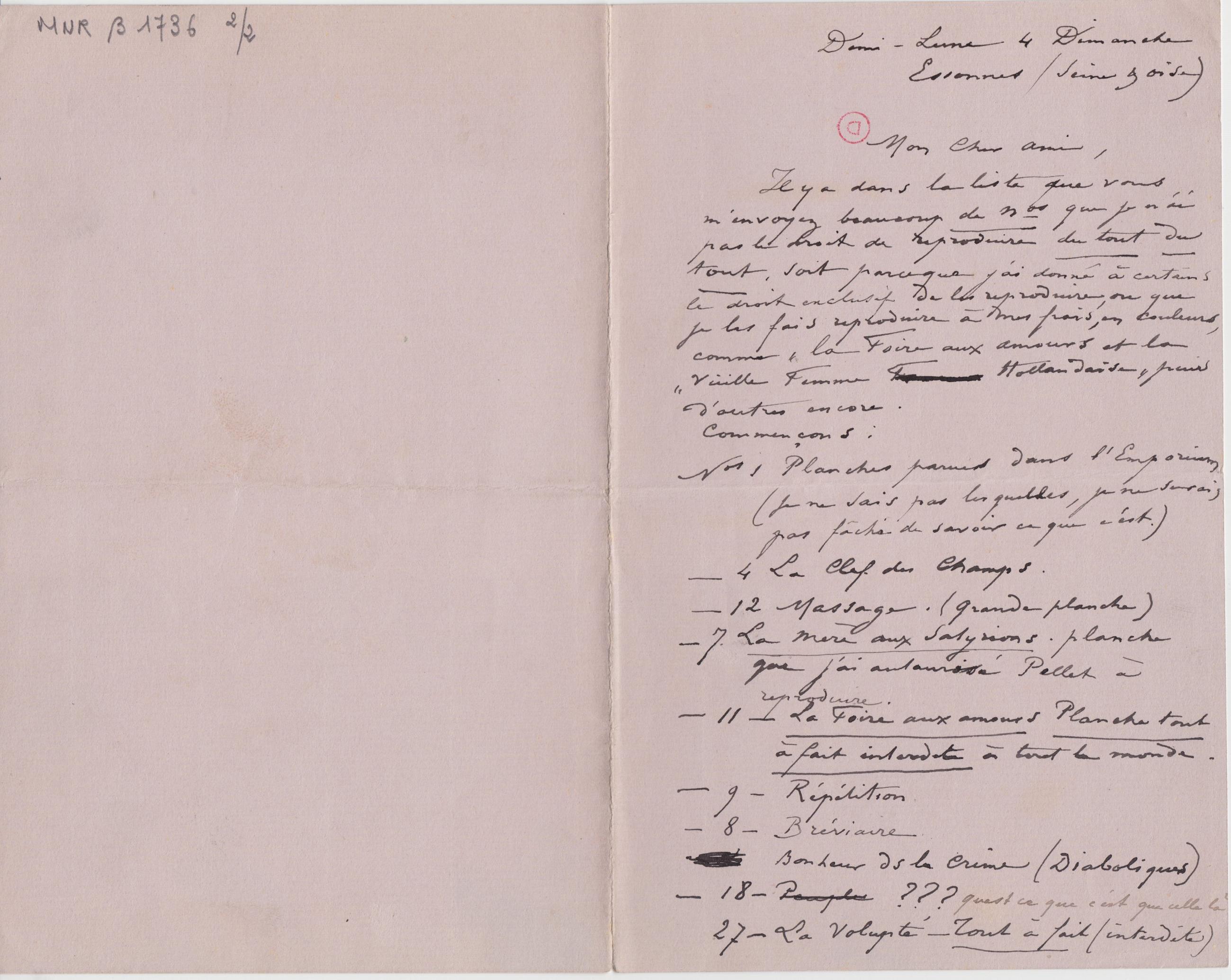 Écrite en Plume Noir. En-tête: "BV" enlacés en filigrane.