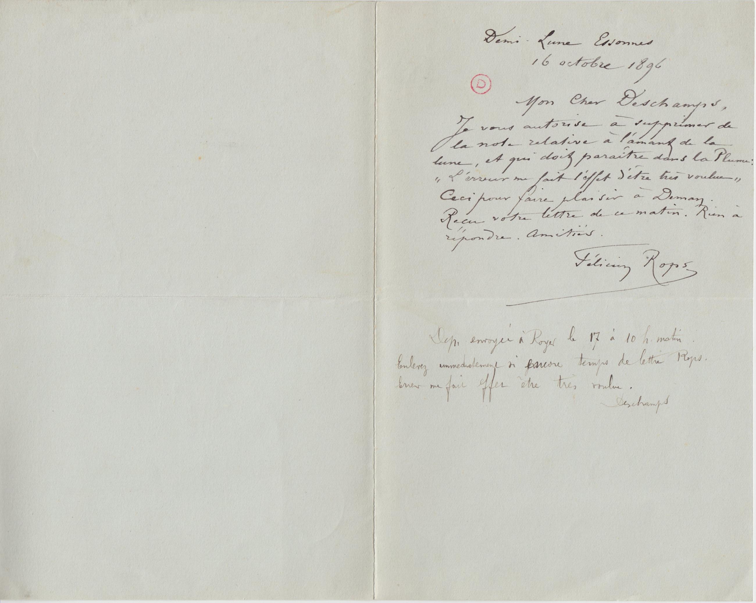 Je vous autorise à supprimer de la note relative à l’amant de la lune, et qui doit paraître dans la Plume : « L’erreur me fait l’effet d’être très voulue » Ceci pour faire plaisir à Deman.