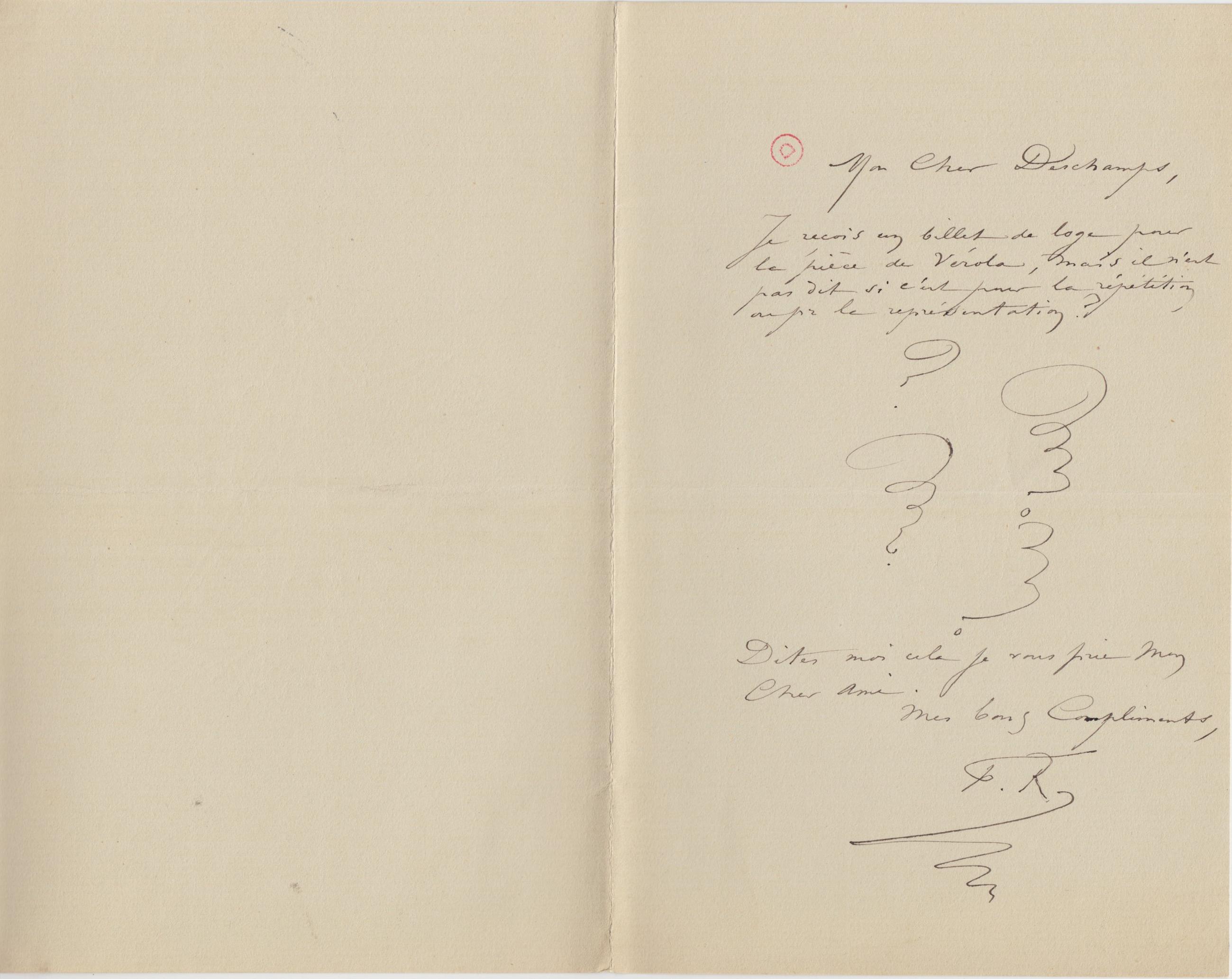 Je reçois un billet de loge pour la pièce de Vérola, mais il n’est pas dit si c’est pour la répétition ou pour la représentation ?