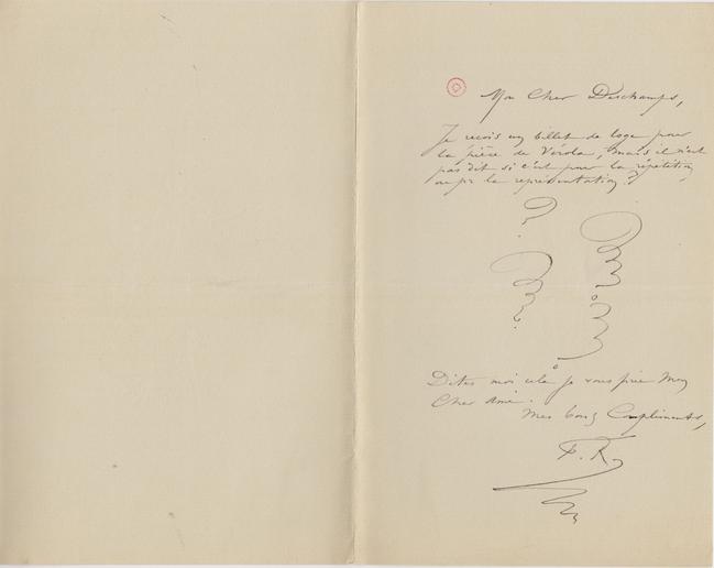 Écrite en Plume Noir. En-tête: "BV" enlacés en filigrane.