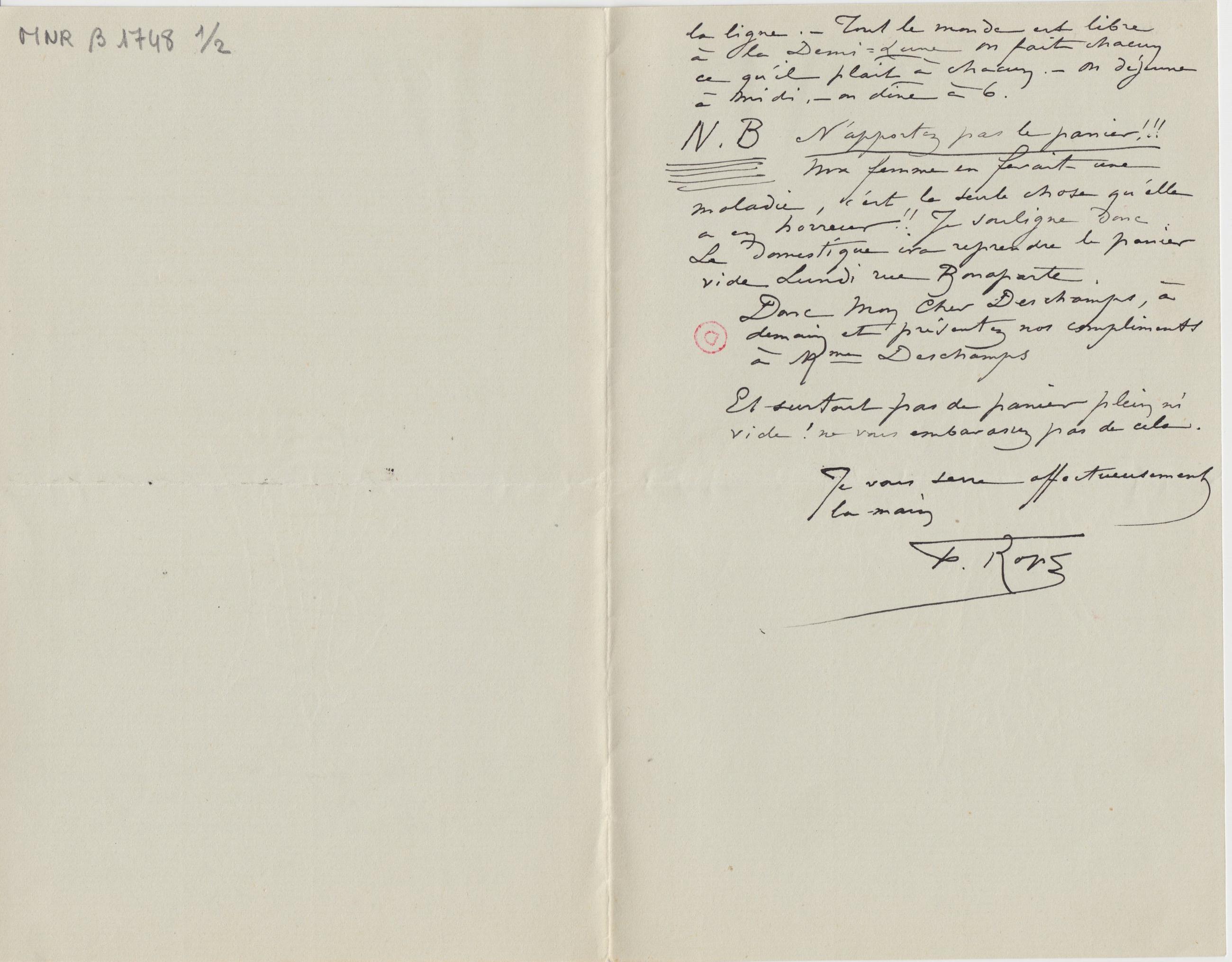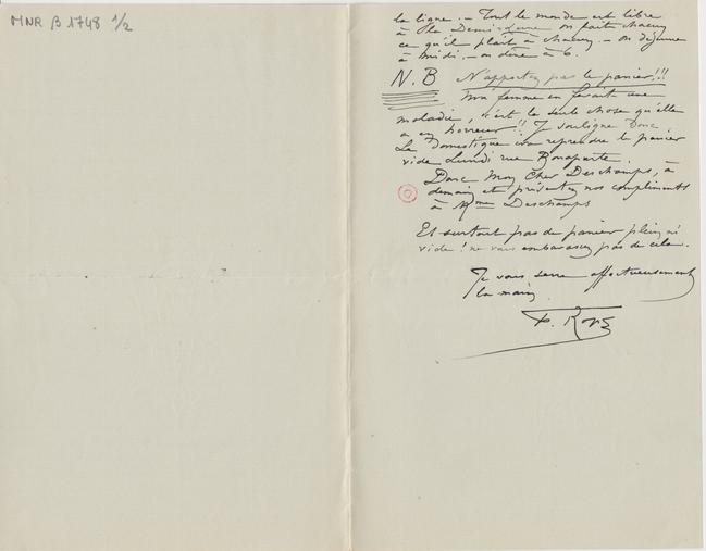Ma femme en ferait une maladie, c’est la seule chose qu’elle a en horreur !! Je souligne donc. Le domestique ira reprendre le panier vide Lundi rue Bonaparte.