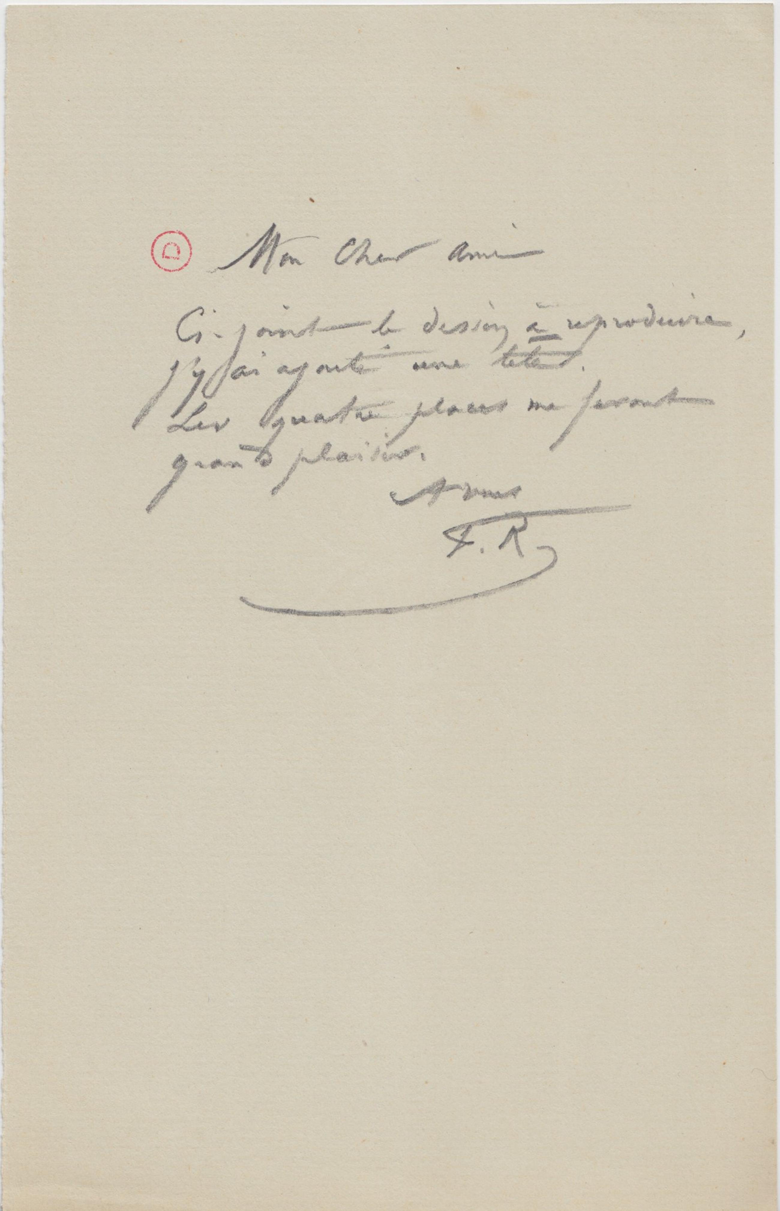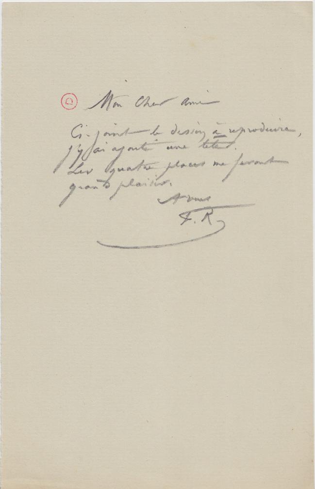 Écrite en Crayon Gris. En-tête: "BV" enlacés en filigrane.