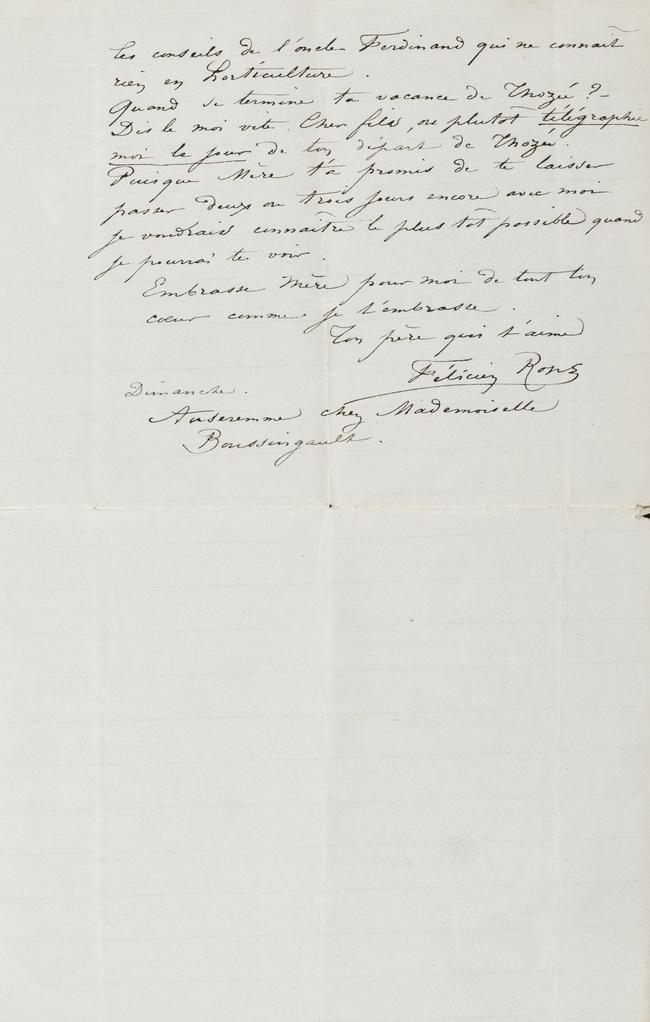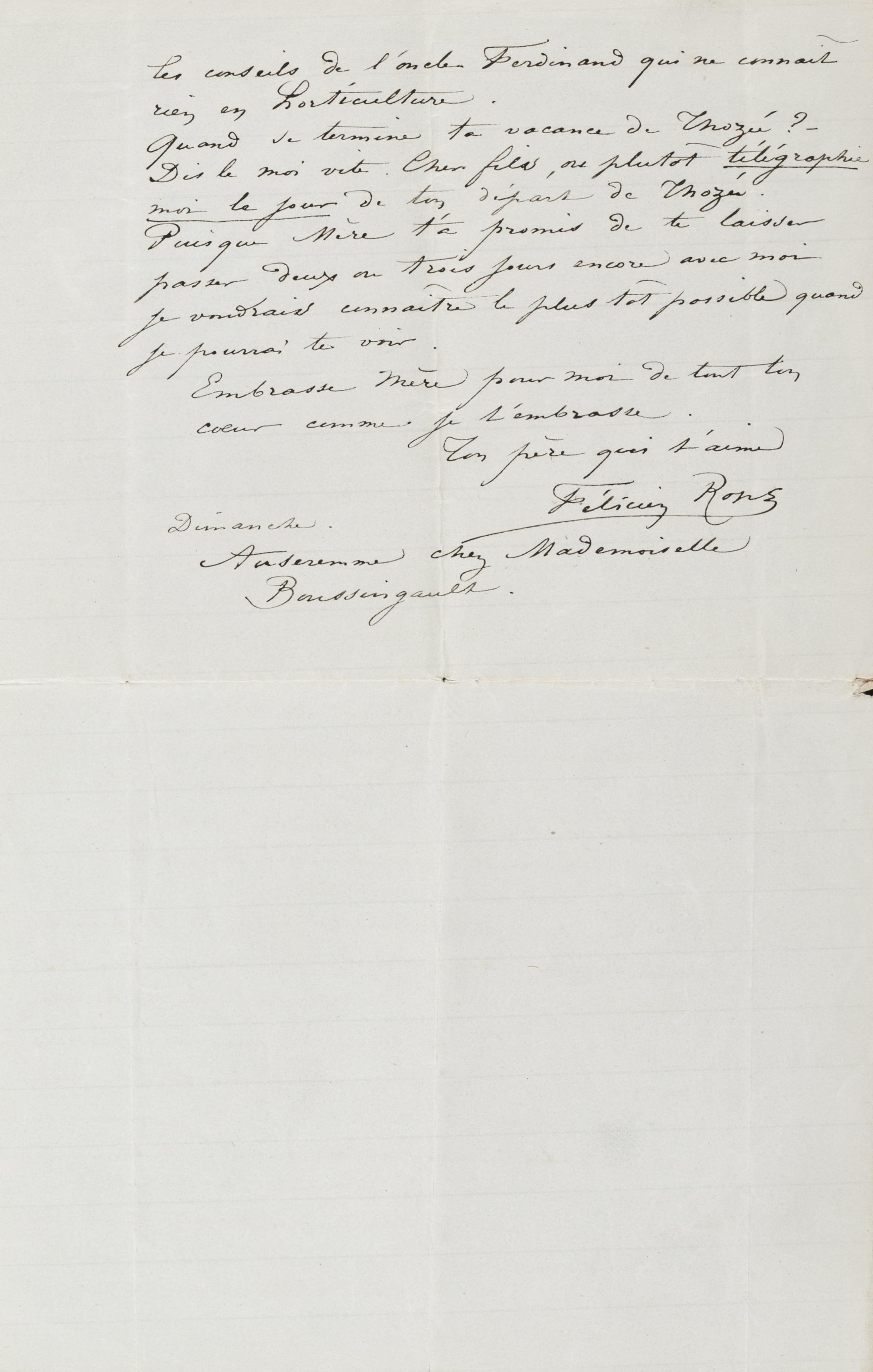 Quand se termine ta vacance de Thozée ? – Dis le moi vite. Cher fils, ou plutôt télégraphie moi le jour de ton départ de Thozée.
