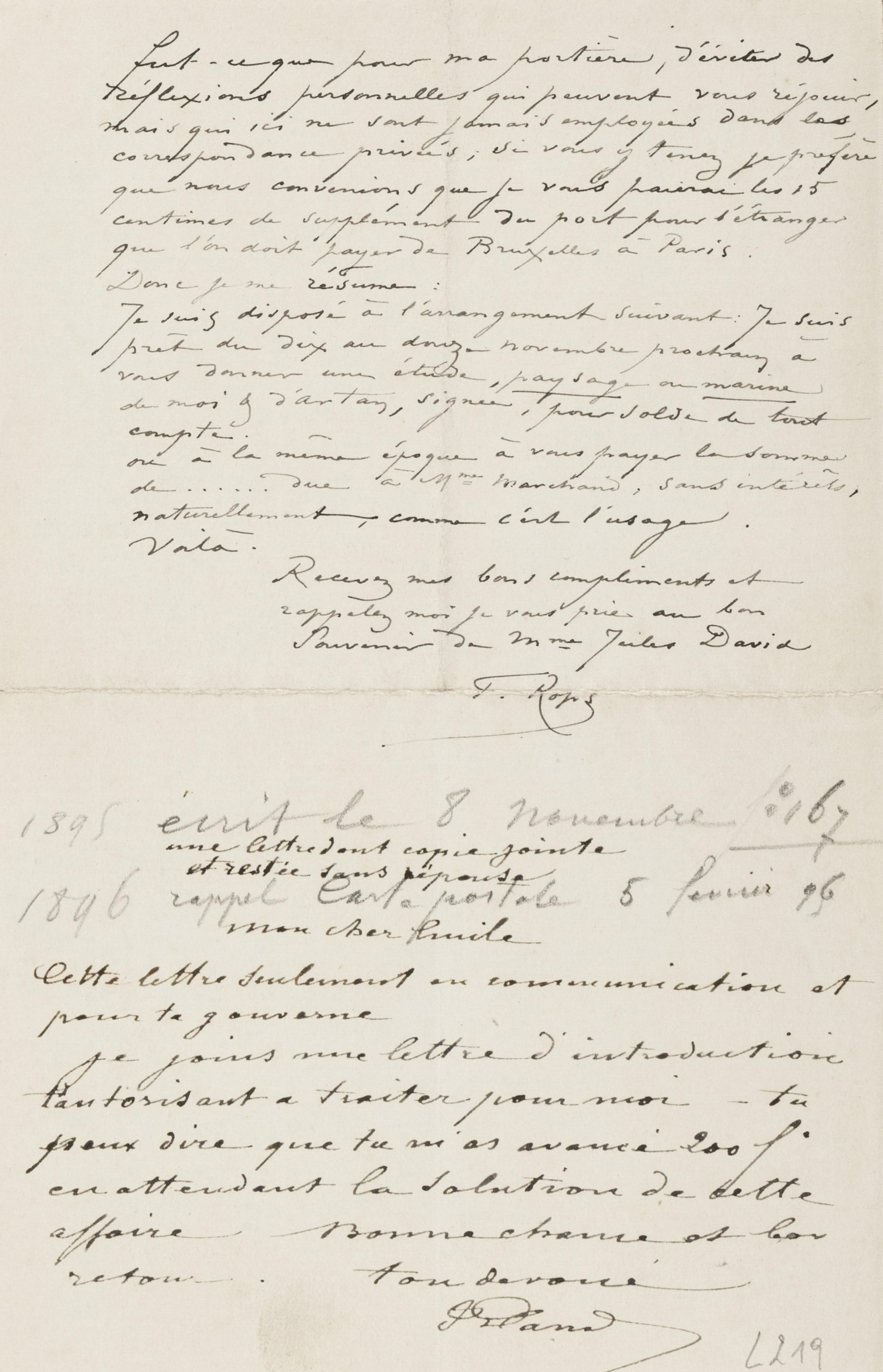 Lettre de Félicien Rops à [Jules David]