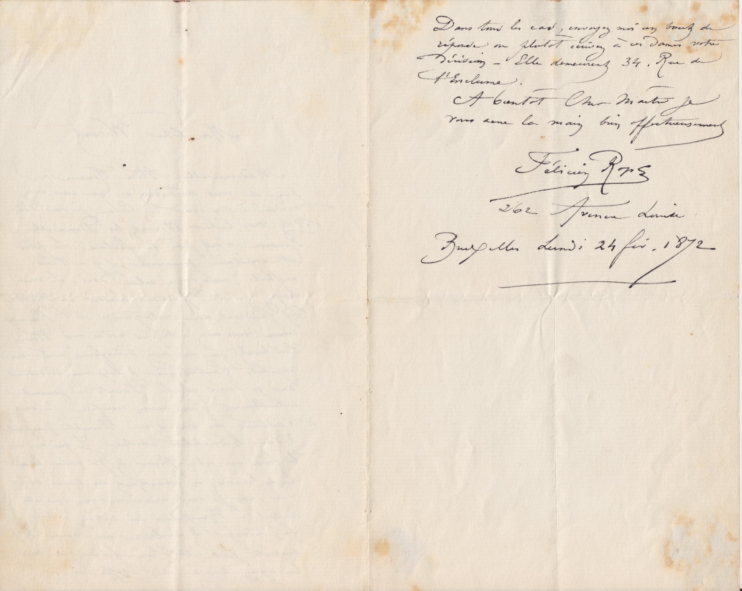 Dans tous les cas, envoyez moi un bout de réponse ou plutôt écrivez à ces dames votre décision – Elle demeurent 34. Rue de l’Enclume.