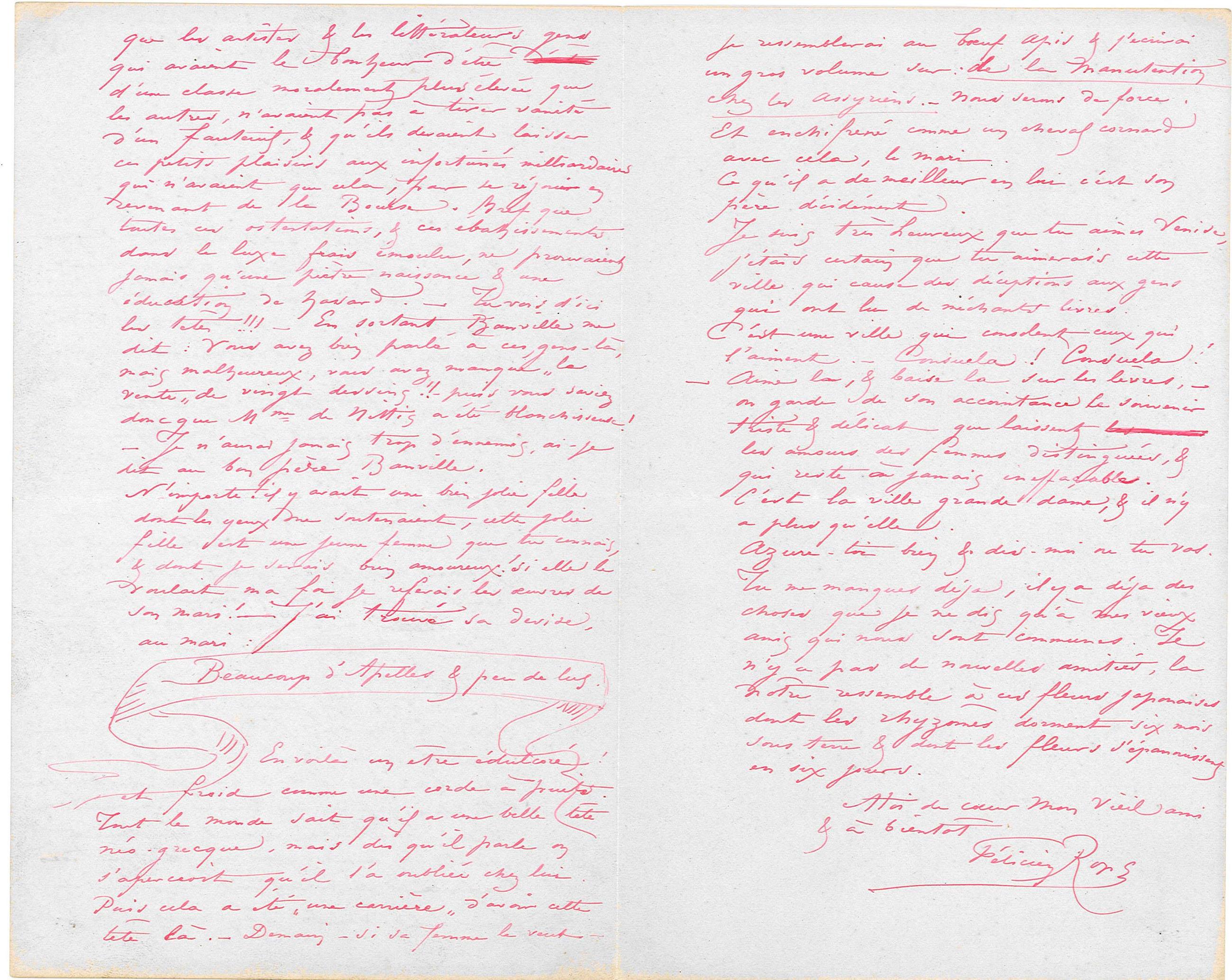 – Hier, j’ai été chez Nittis, derechef, & j’y ai mis franchement le pied dans, & sur tous les plats. On ne m’invitera plus, & j’en suis fort aise. J’ai commis dans ce salon, où les artistes & les gens de plume sont aux genoux des banquiers, le plus grand des crimes : le crime de lèse-million, en disant simplement qu’il n’y avait que les gens qui dès l’enfance se mouchaient dans leurs doigts pour tirer vanité d’un mouchoir de poche,