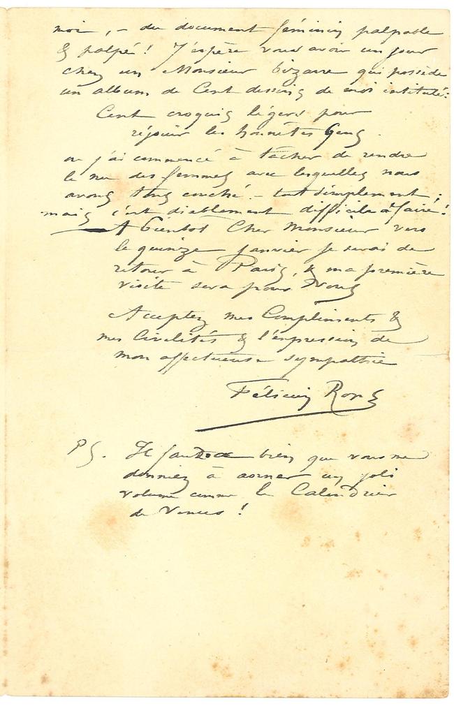 À bientôt Cher Monsieur vers le quinze janvier je serai de retour à Paris, & ma première visite sera pour vous