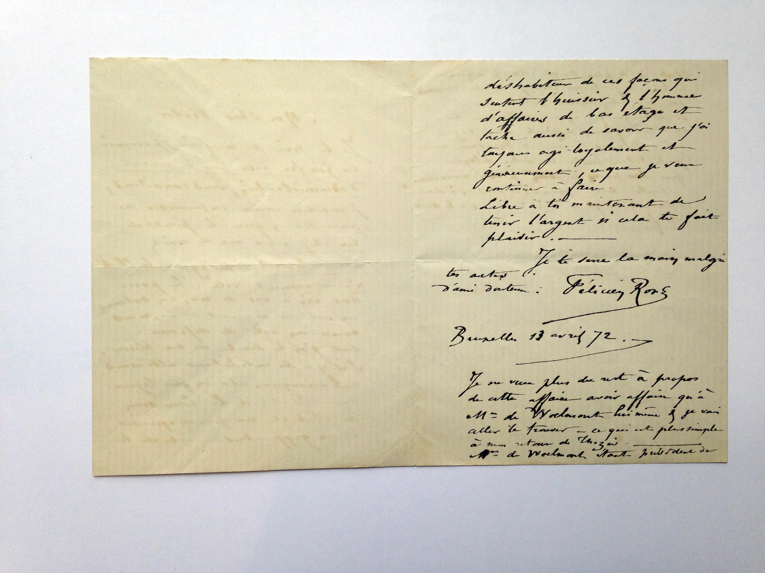 Je ne veux plus du reste à propos de cette affaire avoir affaire qu’à Mr de Wochmont lui même & je vais aller le trouver – ce qui est plus simple à mon retour de Thozée. ‒