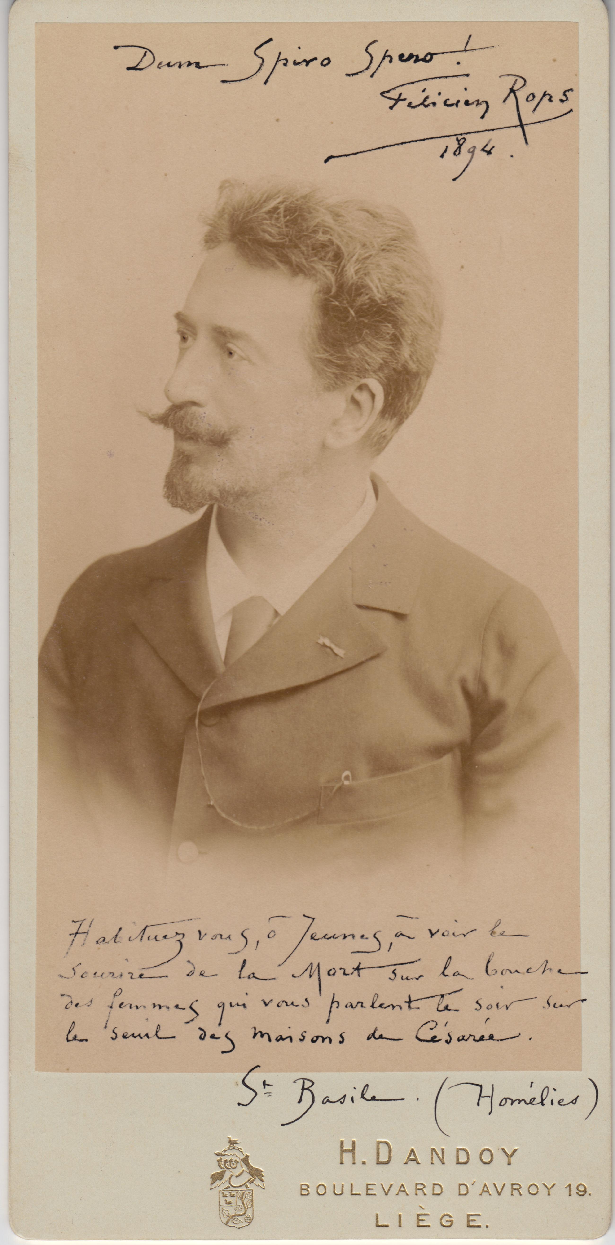 La photographie qui représente un portrait de Rops provient du studio d'Héliodore Dandoy (1831-1909) situé Boulevard d'Avroy 19 à Liège.