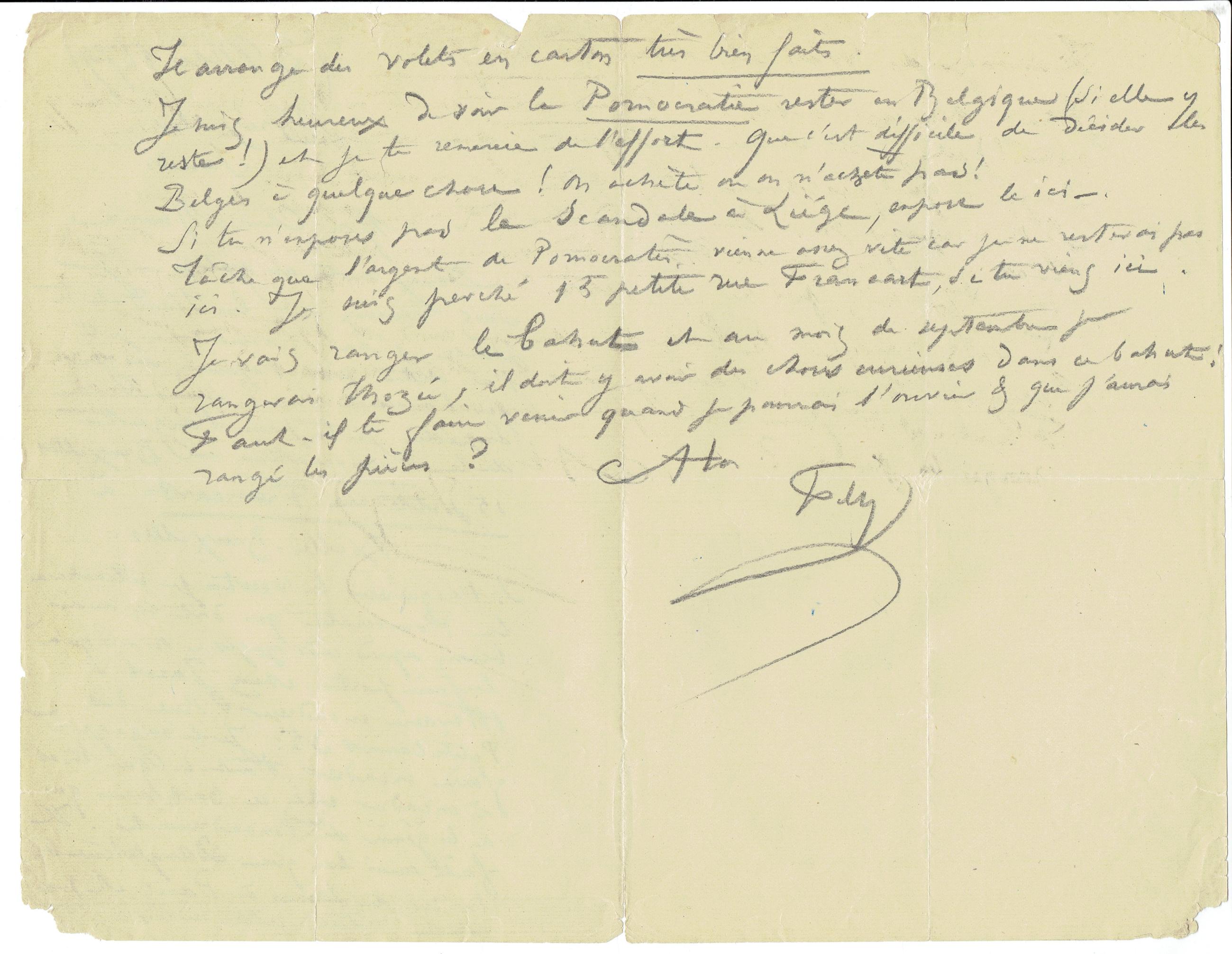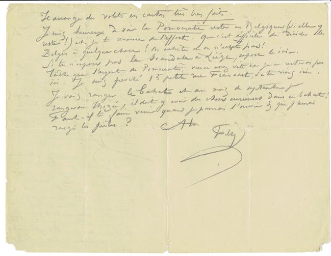Je vais ranger le bahut et au mois de septembre je rangerai Thozée, il doit y avoir des choses curieuses dans ce bahut ! Faut-il te faire venir quand je pourrais l'ouvrier & que j'aurais rangé les pièces ?