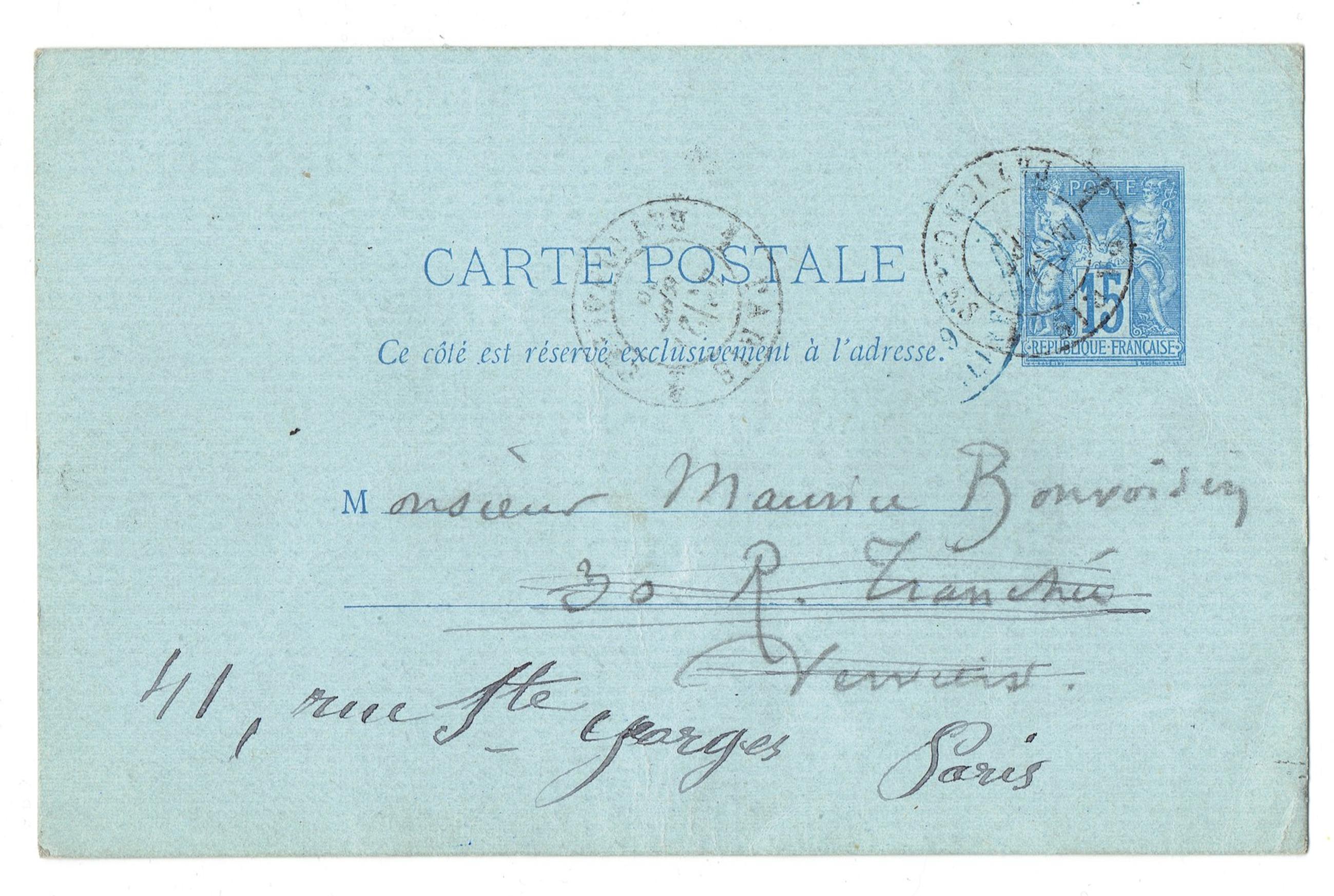 Monsieur Maurice Bonvoisin30 R. TranchéeVerviers. Page 1 Verso : 2
