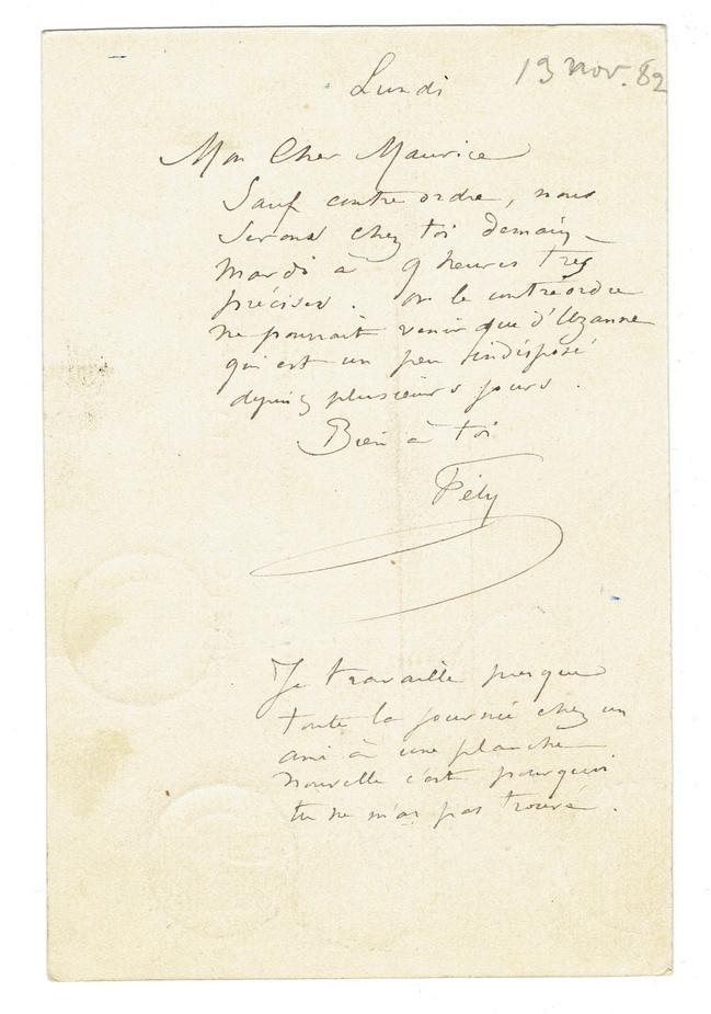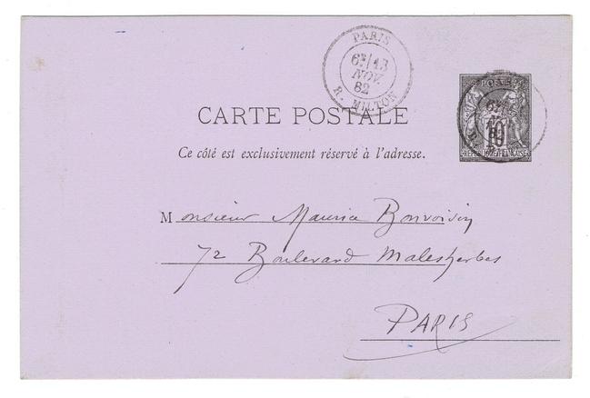 Monsieur Maurice Bonvoisin72 Boulevard MalesherbesPARIS Page 1 Verso : 2