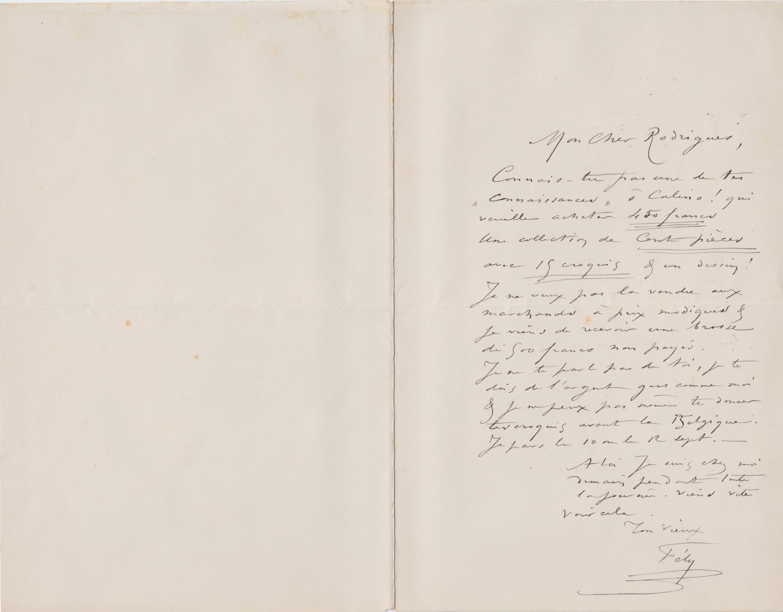 Lettre de Félicien Rops à [Eugène Rodrigues-Henriques]