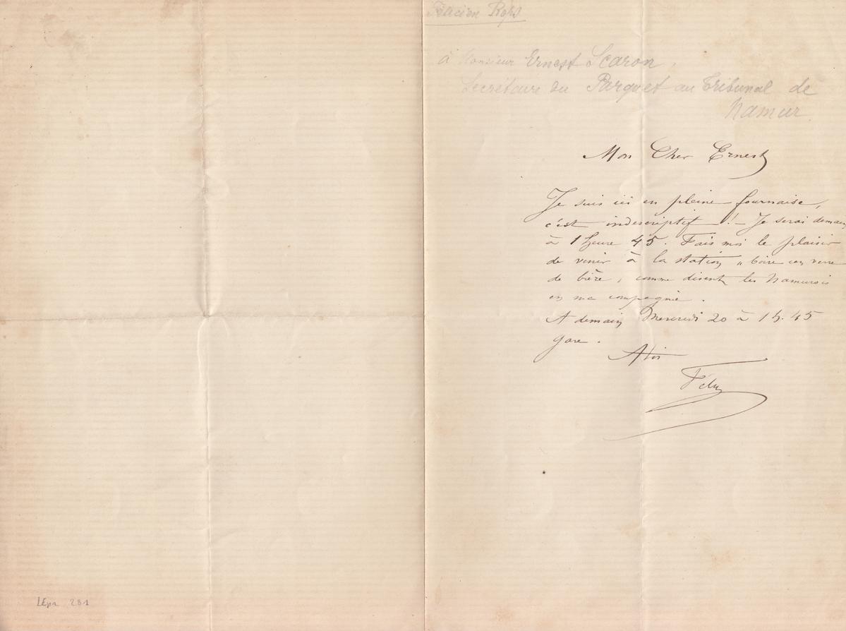 Félicien Rops / à Monsieur Ernest Scaron, / Secrétaire du Parquet au Tribunal de Namur