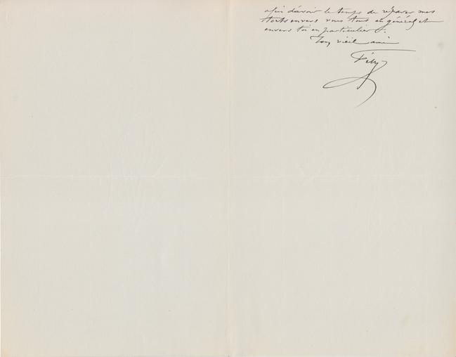 Je te le porterai fini, ou plutôt je le porterai à Mr Paillet à la fin de la semaine et les deux autres suivront & seront à vous du dix au quinze janvier au plus tôt. Que veux-tu ? cette année comme je te l’ai dit est tellement chargée de jours noirs que je préfère la rayer de ma vie. Le « Néfastisme » y a eu trop de place vraiment, et tout cela a tellement eu d’influence sur mon travail & sur mon esprit, que je n’avais plus ni le courage, ni la volonté ni le désir, ni le talent pour faire qui vaille. Me voici remonté sur ma cosse et cette mise au vert forcée va je l’espère lui remettre un peu de feu au jarrets.