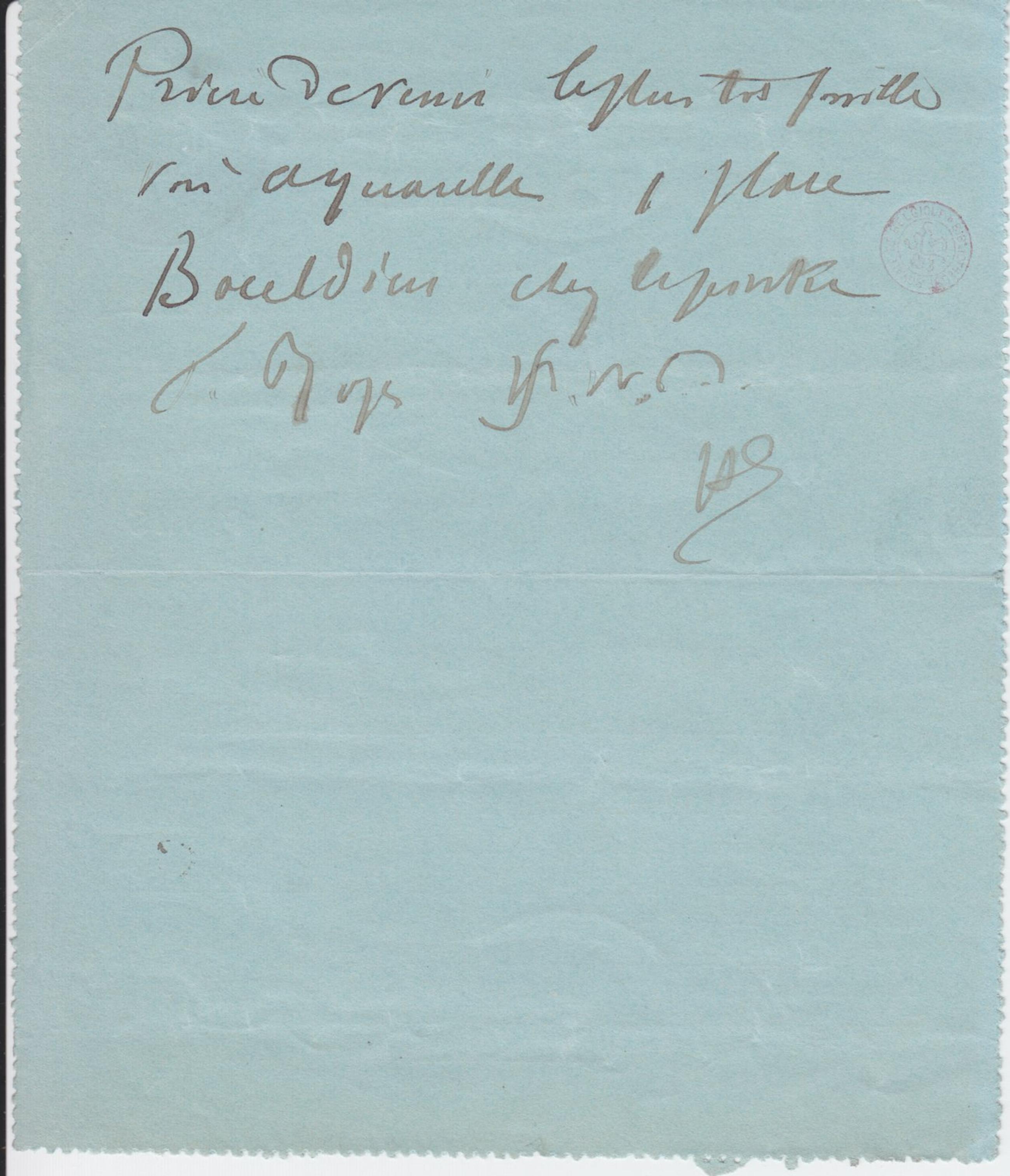Prière de venir le plus tot possible voir aquarelle 1 place Boieldieu chez le peintre F. Rops indéchiffrable