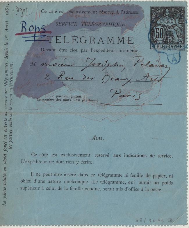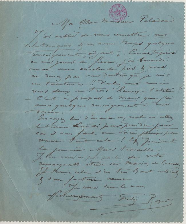 Monsieur Joséphin Peladan2 Rue des Beaux ArtsParis Page 1 Verso : 2