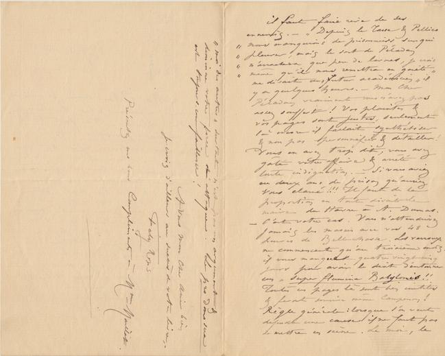 Donc si vous pouvez demain mardi (je serai chez moi de 9 à 11 du matin & de 1 à 5 heures du soir) passez par l’atelier. Je n’ai pas encore lu tout le volume « Curieuse ». Il y a à ce que je peux juger à vue de bipède de bien belles choses ! mais la fin est une folie inutile, & qui vous fera « blaguer », ce qui est encore plus inutile