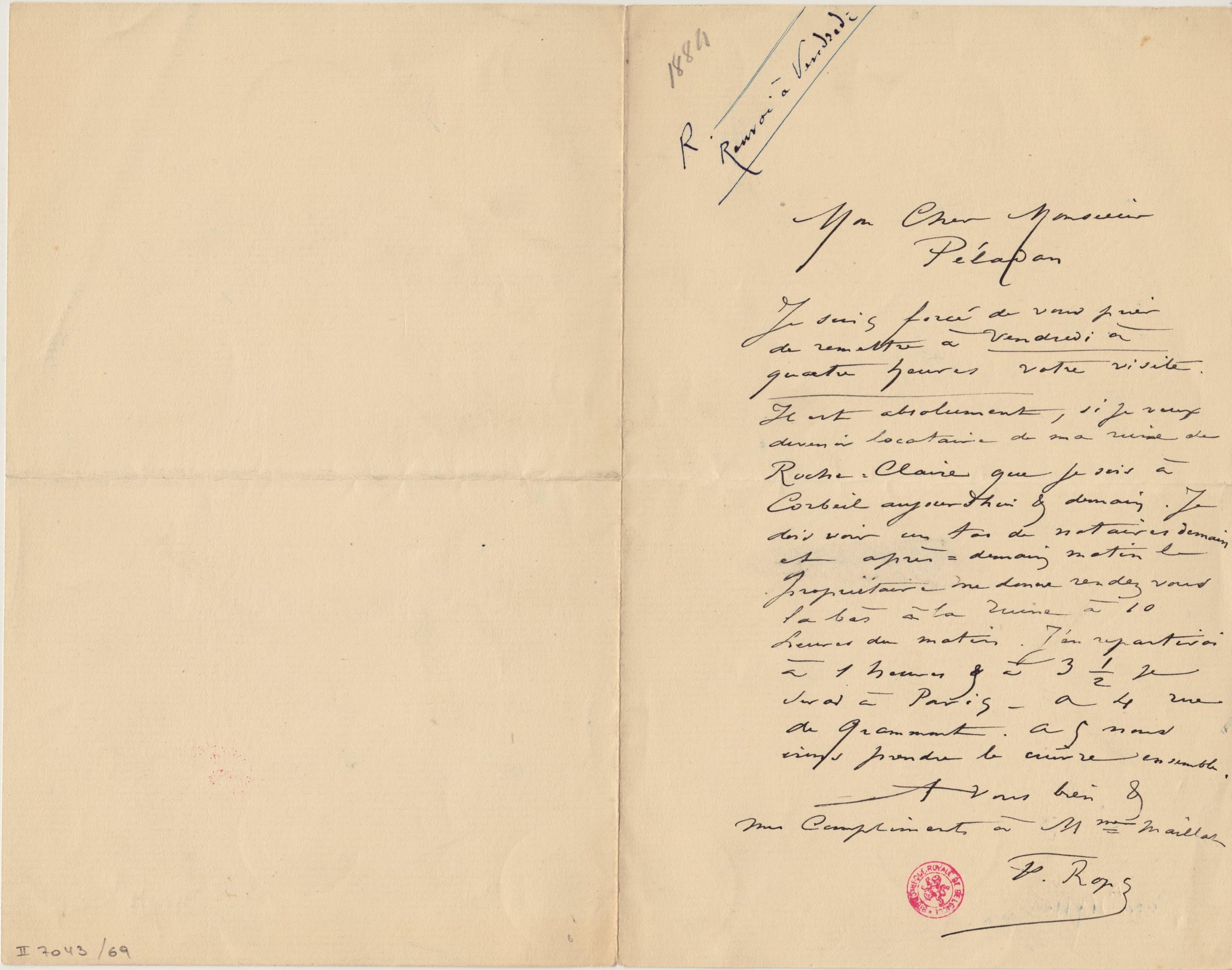 1 feuillets, 1 pages, Vergé, Crème. Papier avec filigrane : Original Louvre Mill. Paris Louvre Note Paper