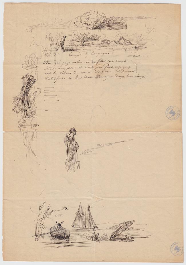 Je te réponds ! tu vois que je suis devenu un homme sérieux. – seulement je n’ai pas de papier a lettre et je te réponds sur le premier chiffon que je ramasse dans l’atelier. Je demeure pour l’instant 68 Rue Lefrancq