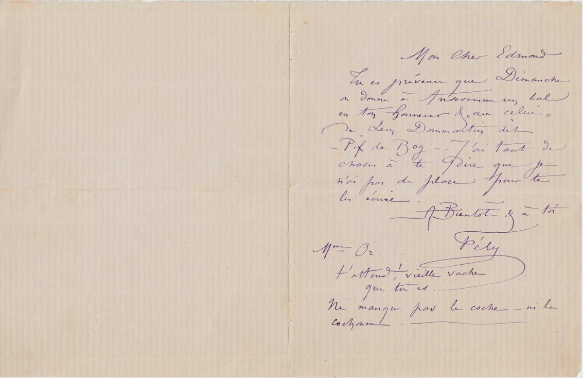 Tu es prévenu que Dimanche on donne à Anseremme un bal en ton honneur & « au celui » de Leon Dommartin dit – Pif de Bog – . J’ai tant de choses à te dire que je n’ai pas de place pour te les écrire.