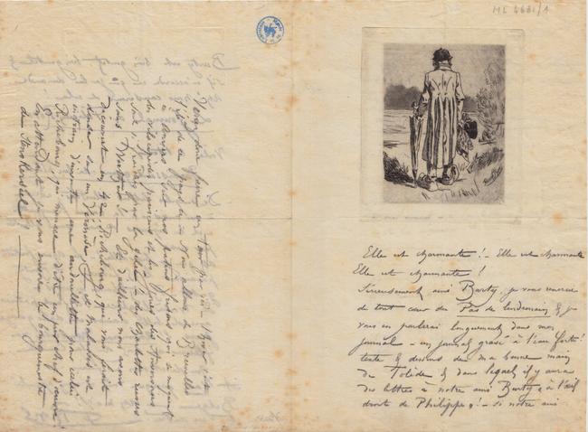 Sérieusement ami Burty, je vous remercie de tout cœur du Pas de lendemain & je vous en parlerai longuement dans mon journal – un journal gravé à l’eau forte ! texte & dessins de ma bonne main de Tolède & dans lequel il y aura des lettres à notre ami Burty « à l’œil droit de Philippe » ! – si notre ami