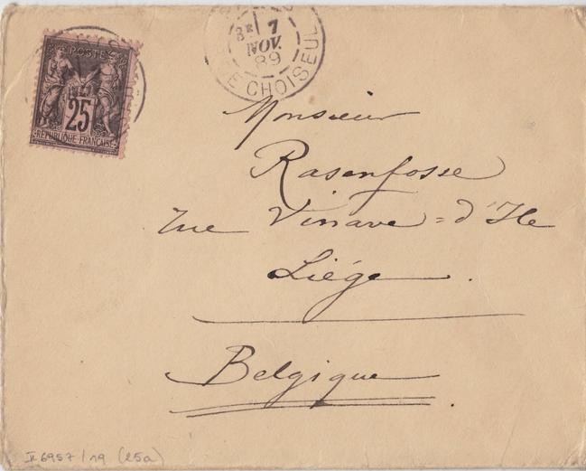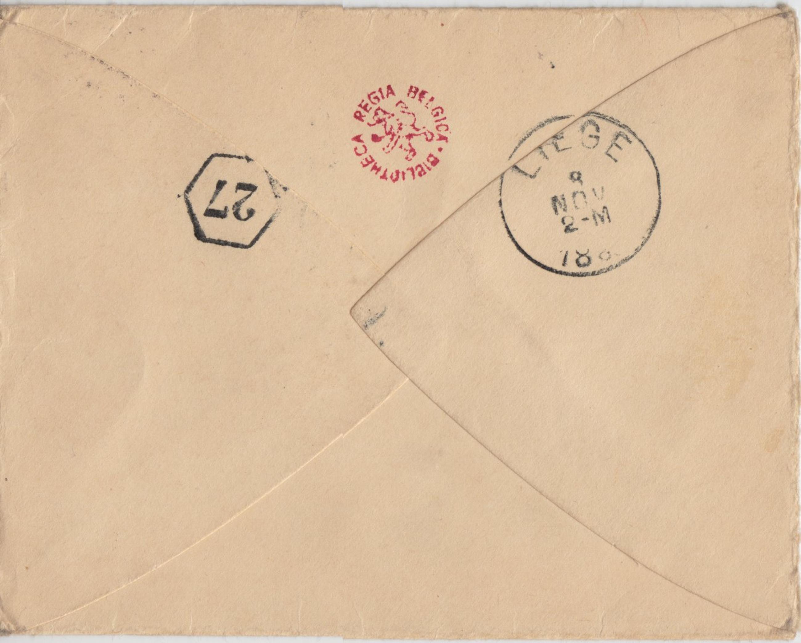 Datation sur base de l'apostille et du cachet postal d'envoi. À noter que le 7 novembre ne tombe pas un mardi en 1889 mais bien un jeudi.