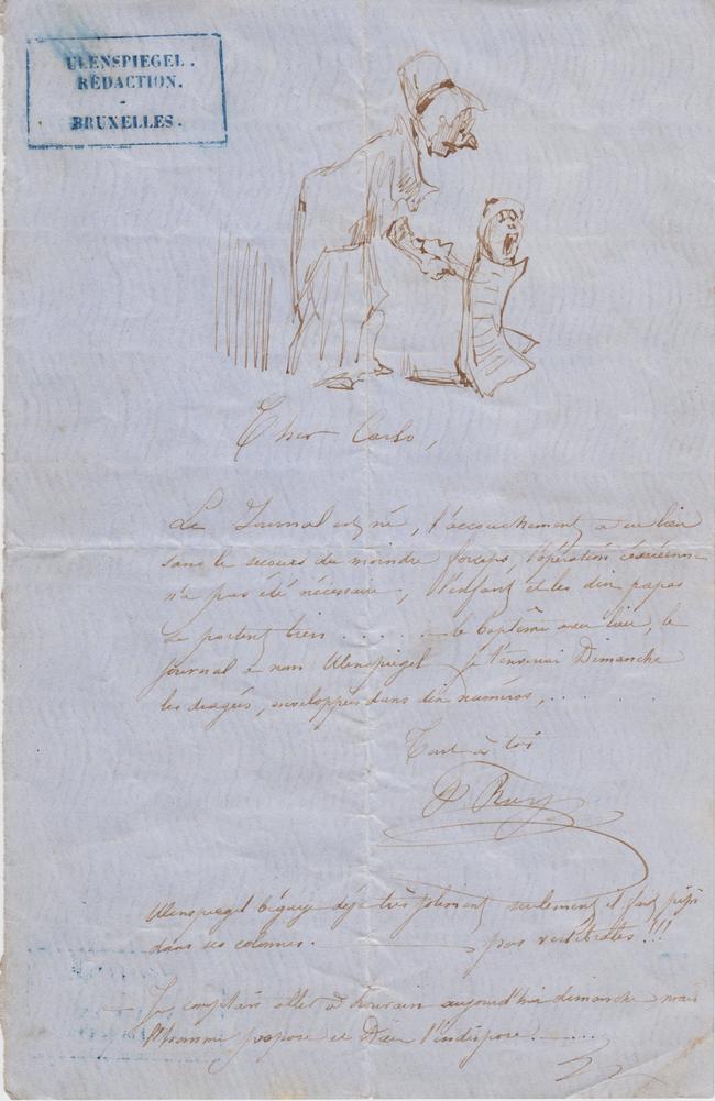 Écrite en Plume Sépia. En-tête: ULENSPIEGEL RÉDACTION - BRUXELLES.