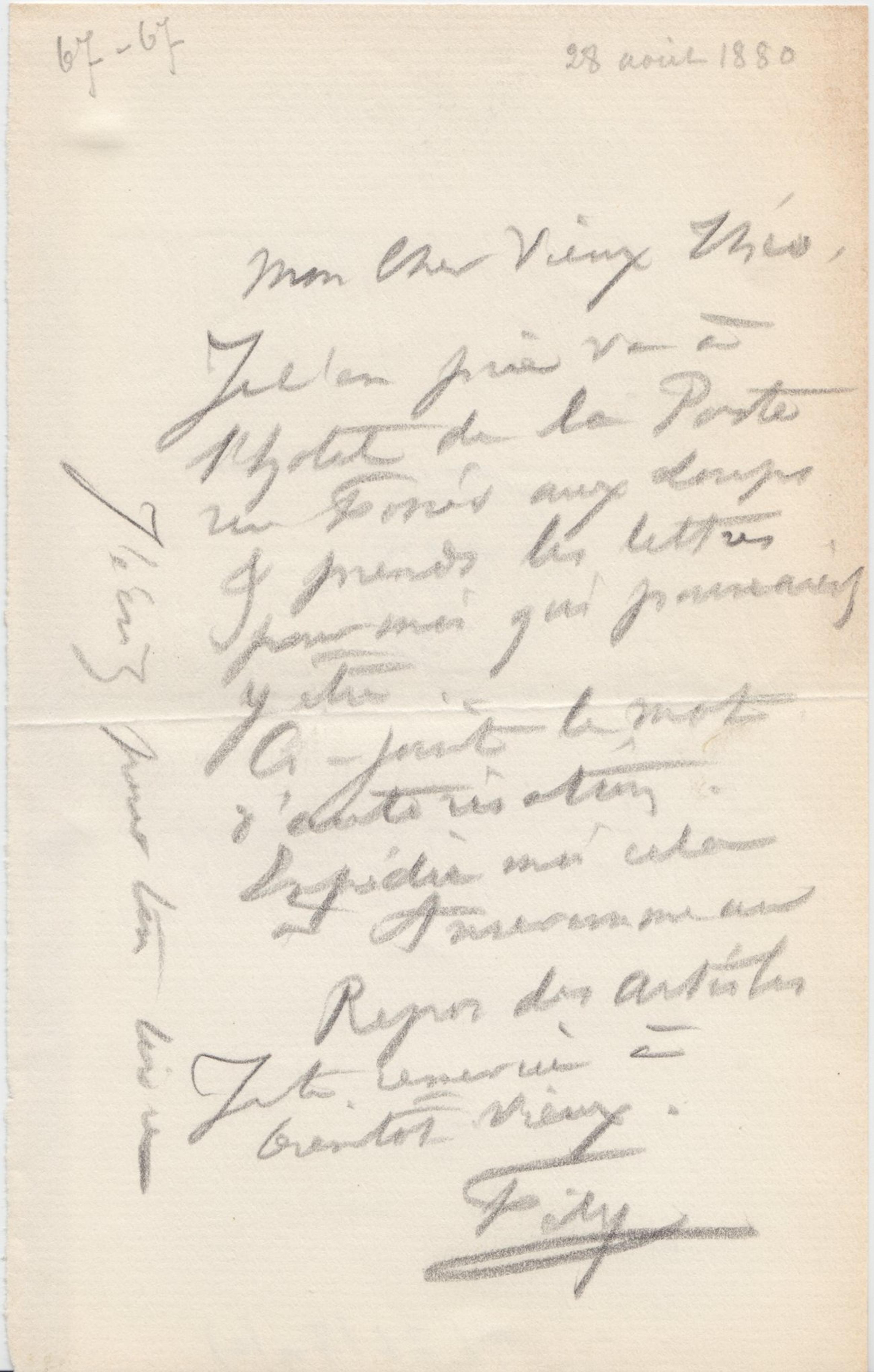 Je t’en prie va à l’hotel de la Poste rue Fossés aux Loups & prends les lettres pour moi qui pourraient y être.