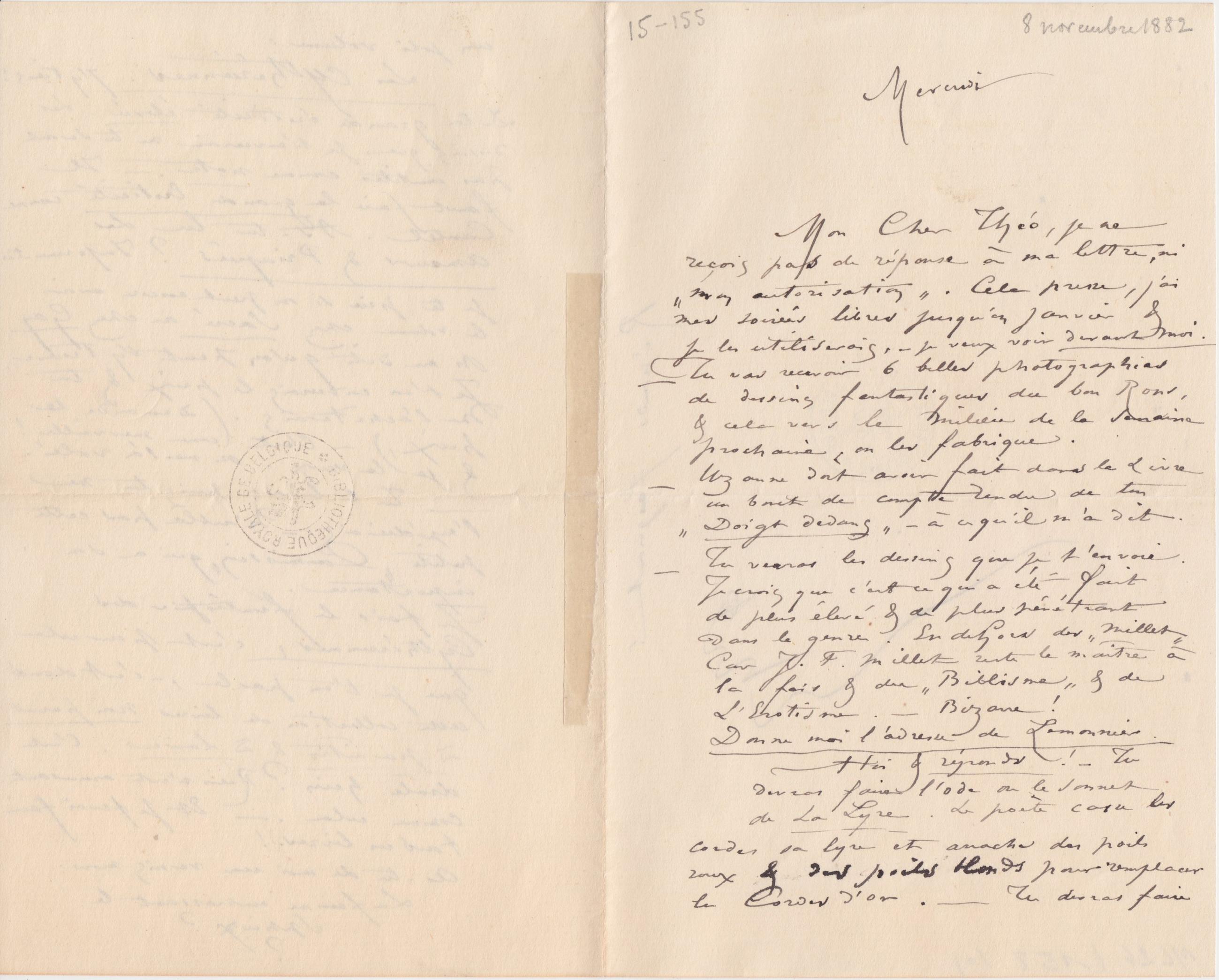 je ne reçois pas de réponse à ma lettre, ni « mon autorisation ». Cela presse, j’ai mes soirées libres jusqu’en janvier & je les utiliserais, – je veux voir devant moi.