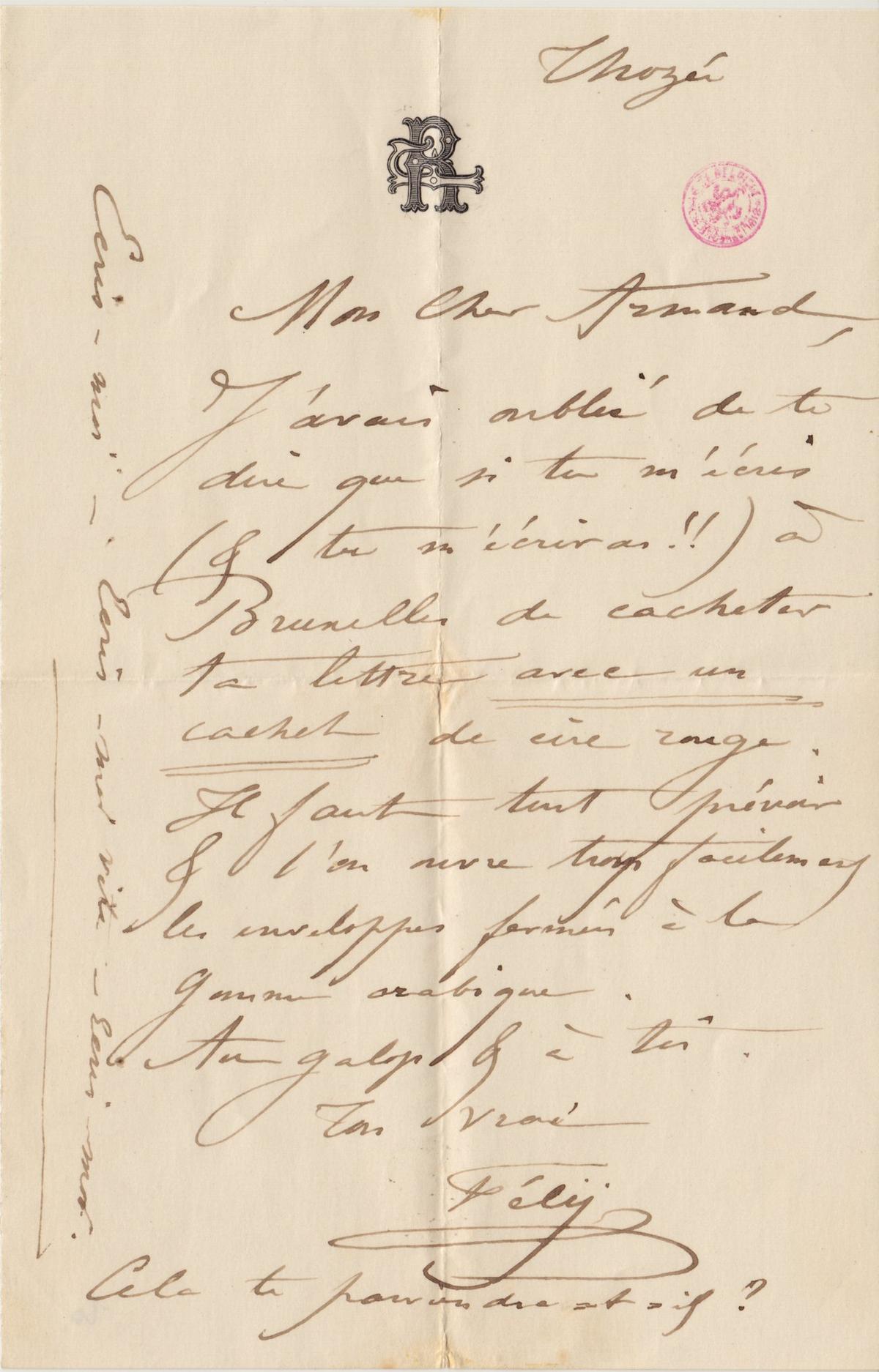 Écrite en Plume Noir. En-tête: "FR" entrelacés.