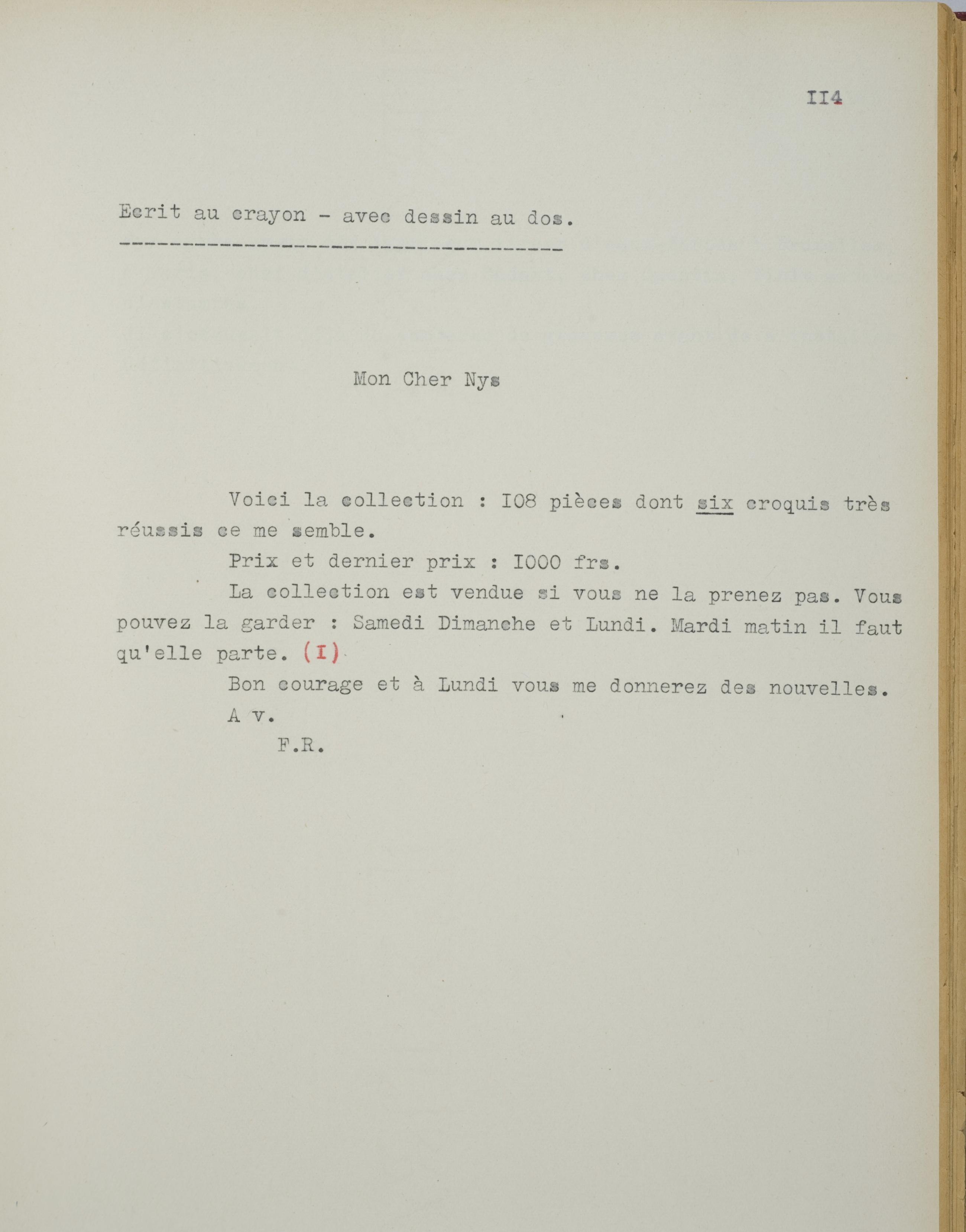 La collection est vendue si vous ne la prenez pas. Vous pouvez la garder : Samedi Dimanche et Lundi. Mardi matin il faut qu’elle parte. Bon courage et à Lundi vous me donnerez des nouvelles.