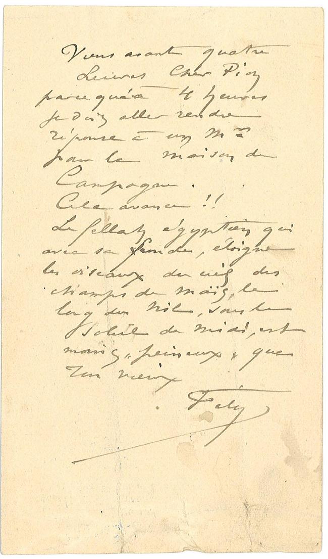 Viens avant quatre heures Cher Pion parce qu’à 4 heures je dois aller rendre réponse à un Mr pour la maison de Campagne.